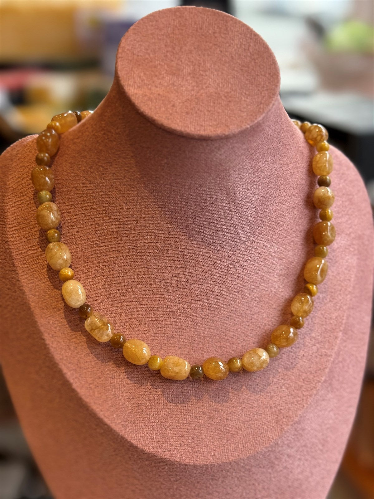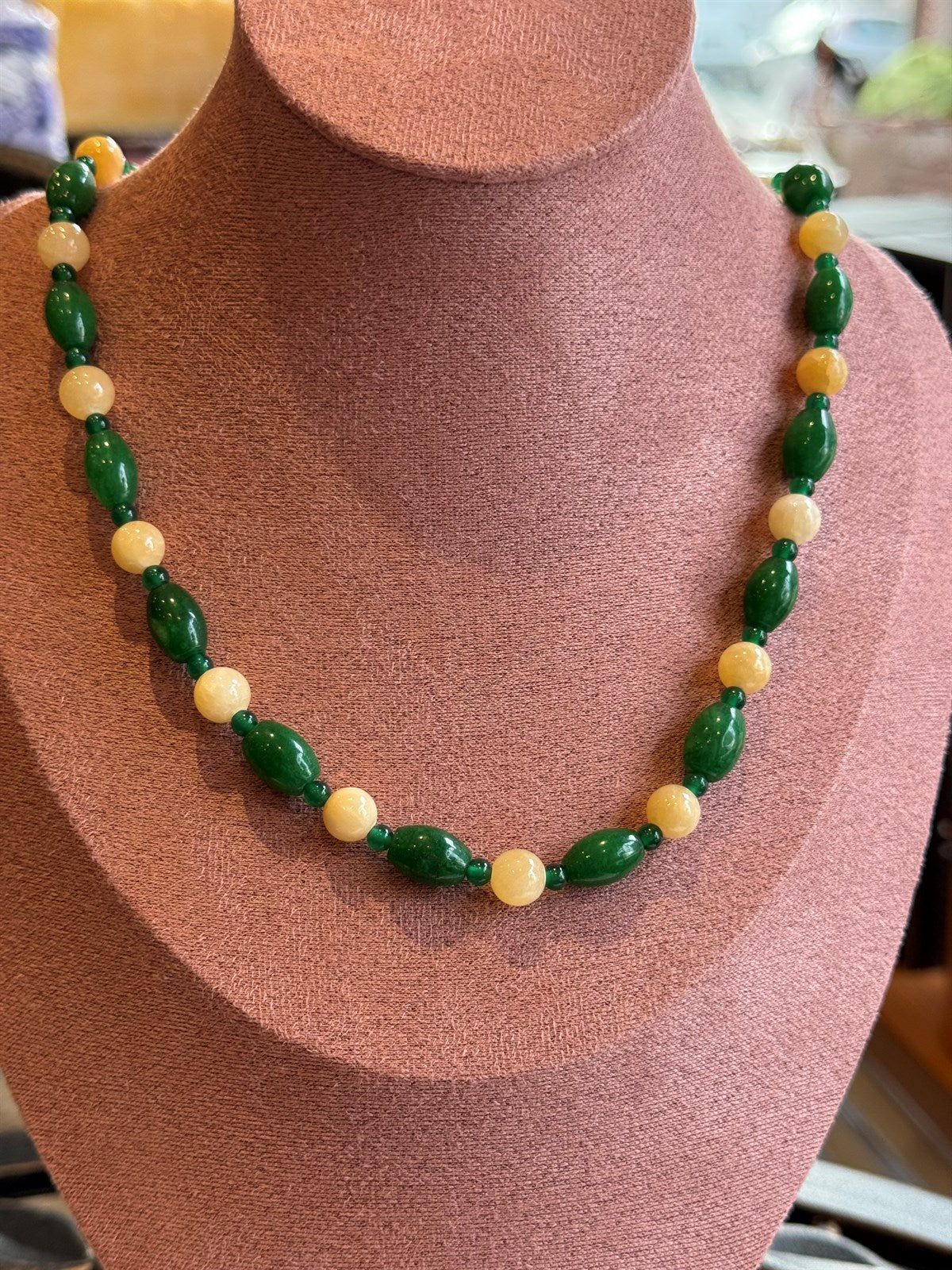 GRÜNER JADE - HONIG CALCIT HALSKETTE ca 51 cm - UNICAT