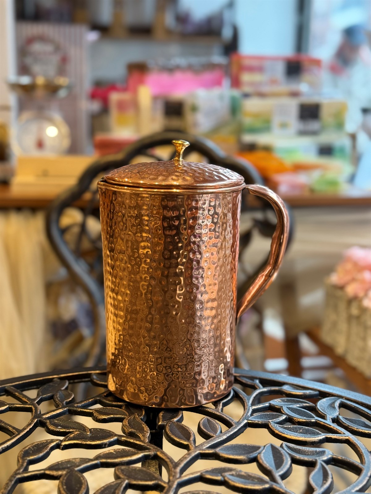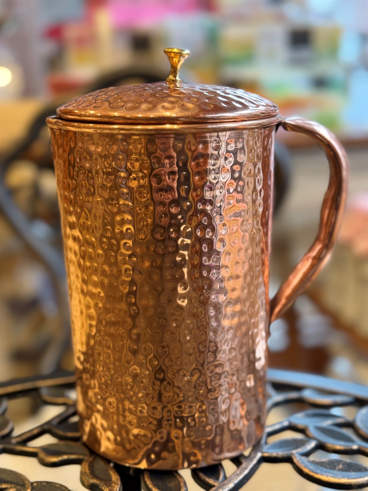 Gehämmerter Krug aus reinem Kupfer mit Deckel ± 1,5 Liter