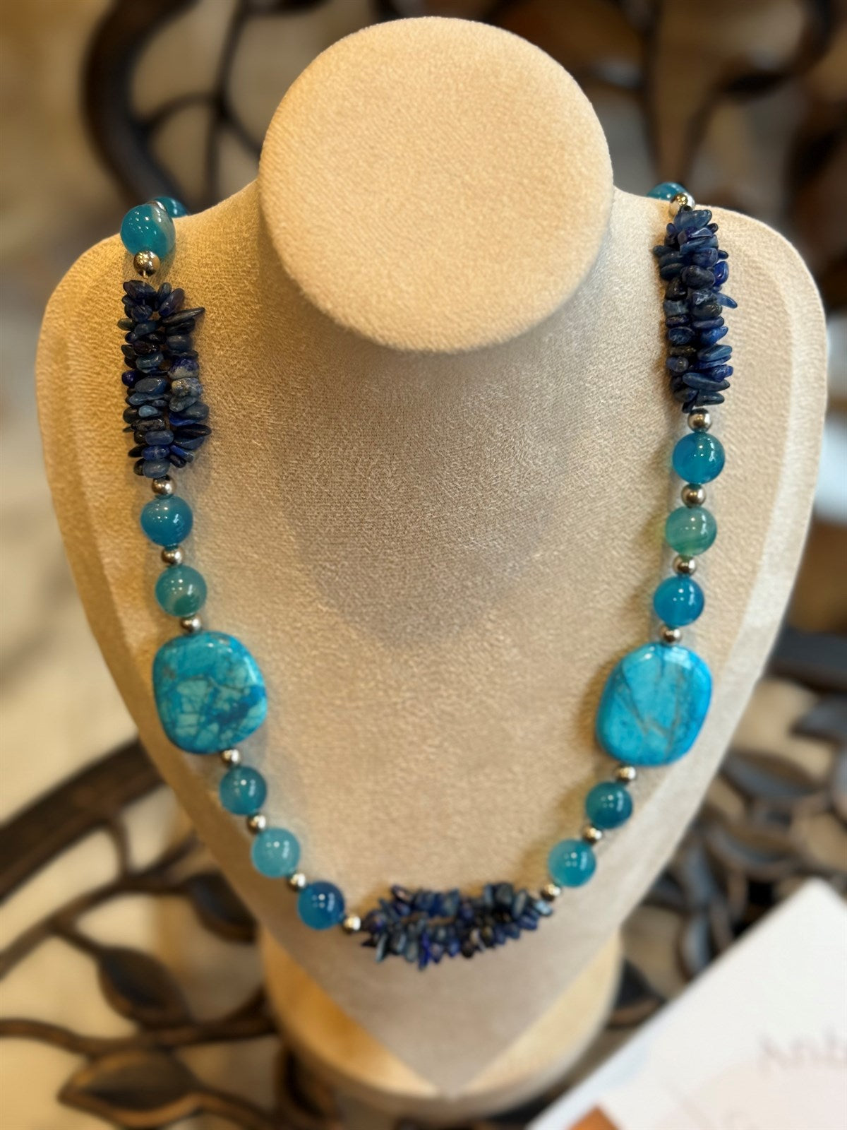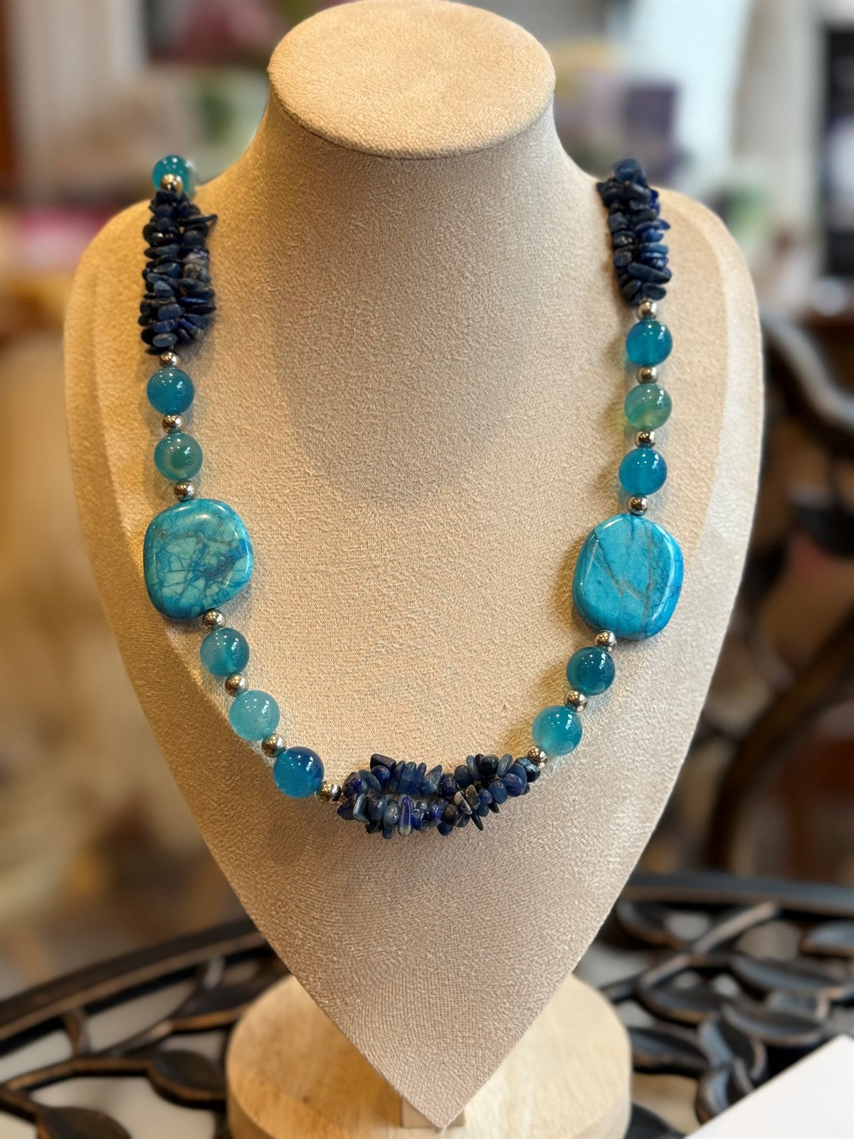 BLAUER ANGELIT - BLAUER ACHAT - LAPISLAZULI HALSKETTE ca 71 cm - UNICAT