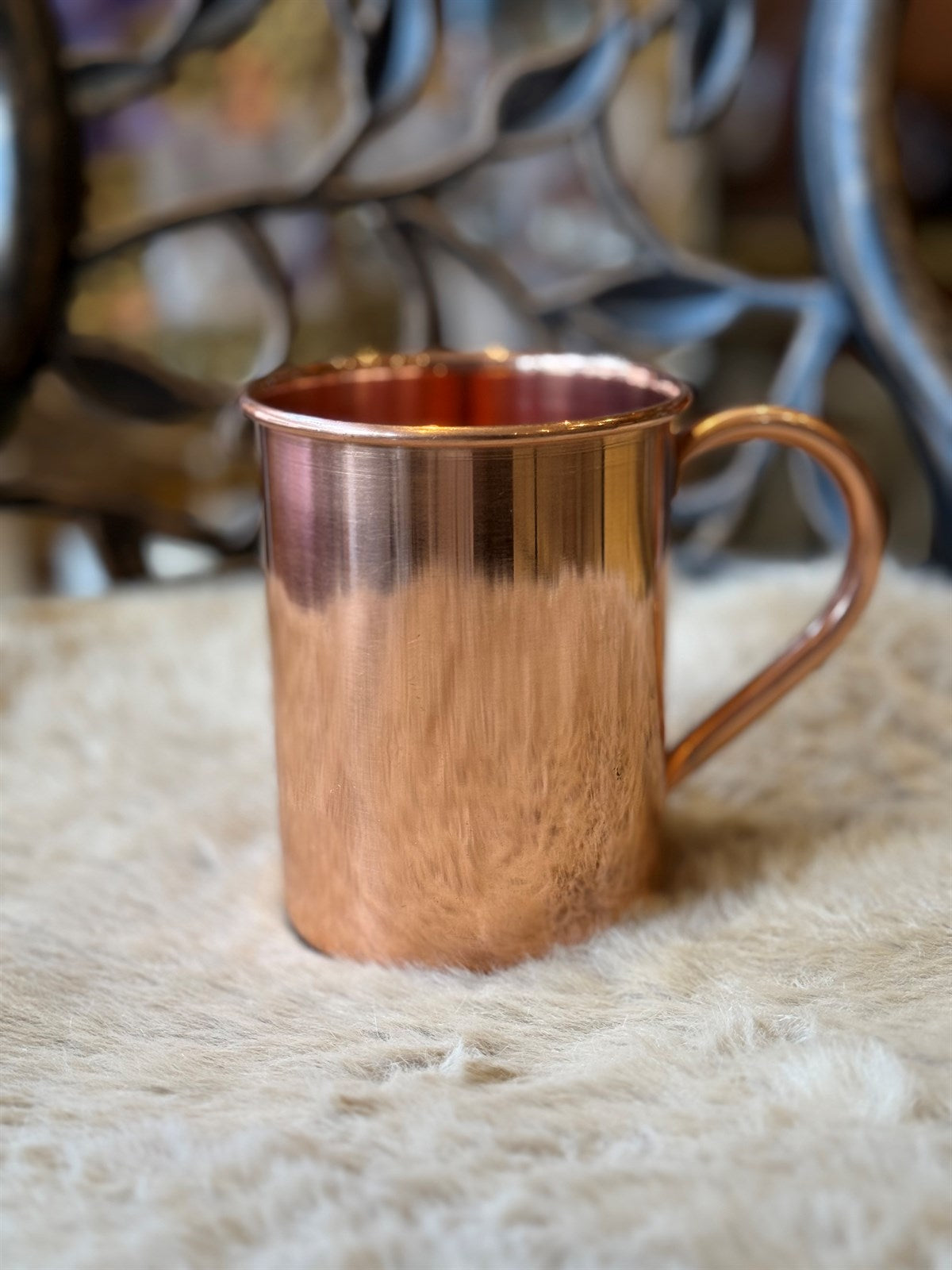 Becher aus reinem Kupfer mit glattem Henkel – 400 ml (Innenseite aus Nickel)