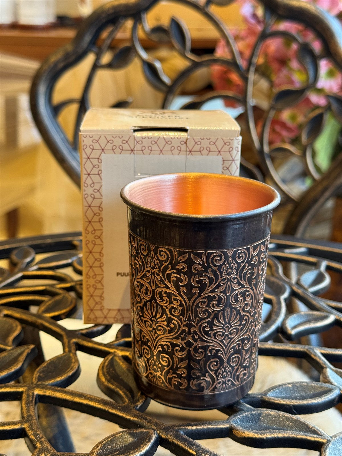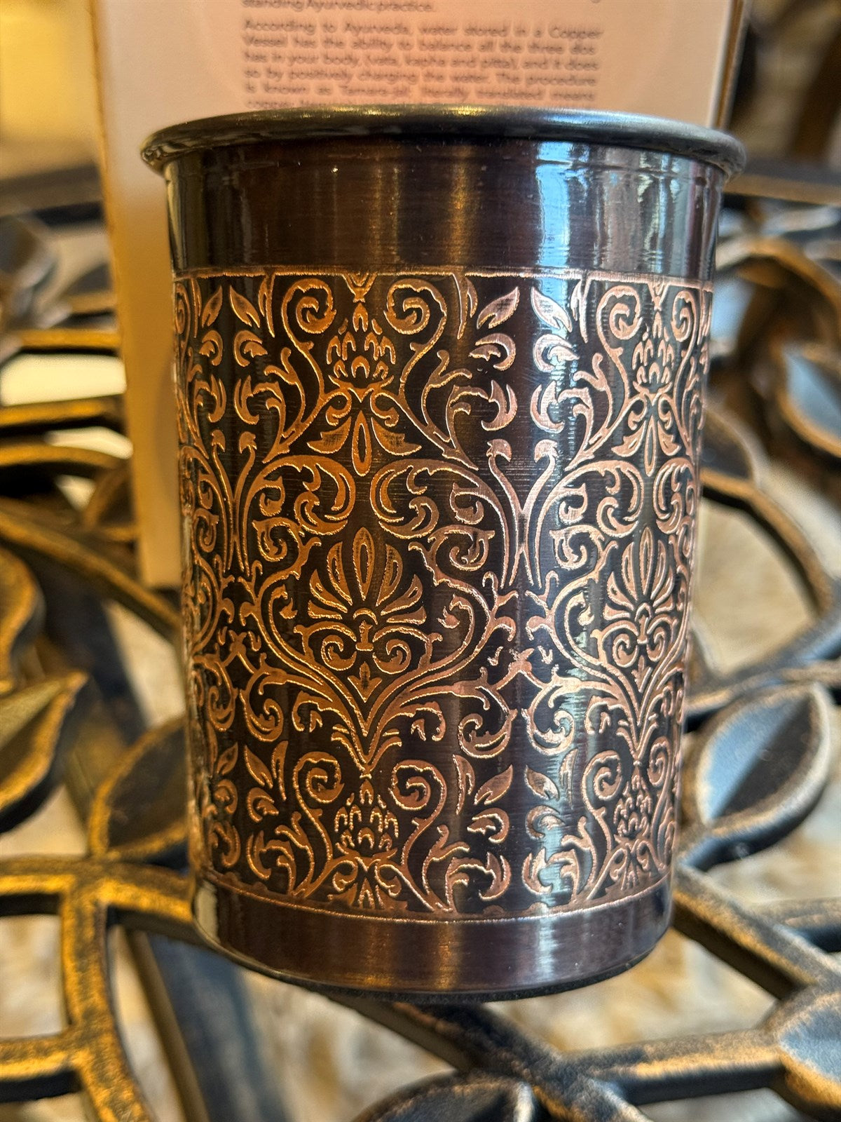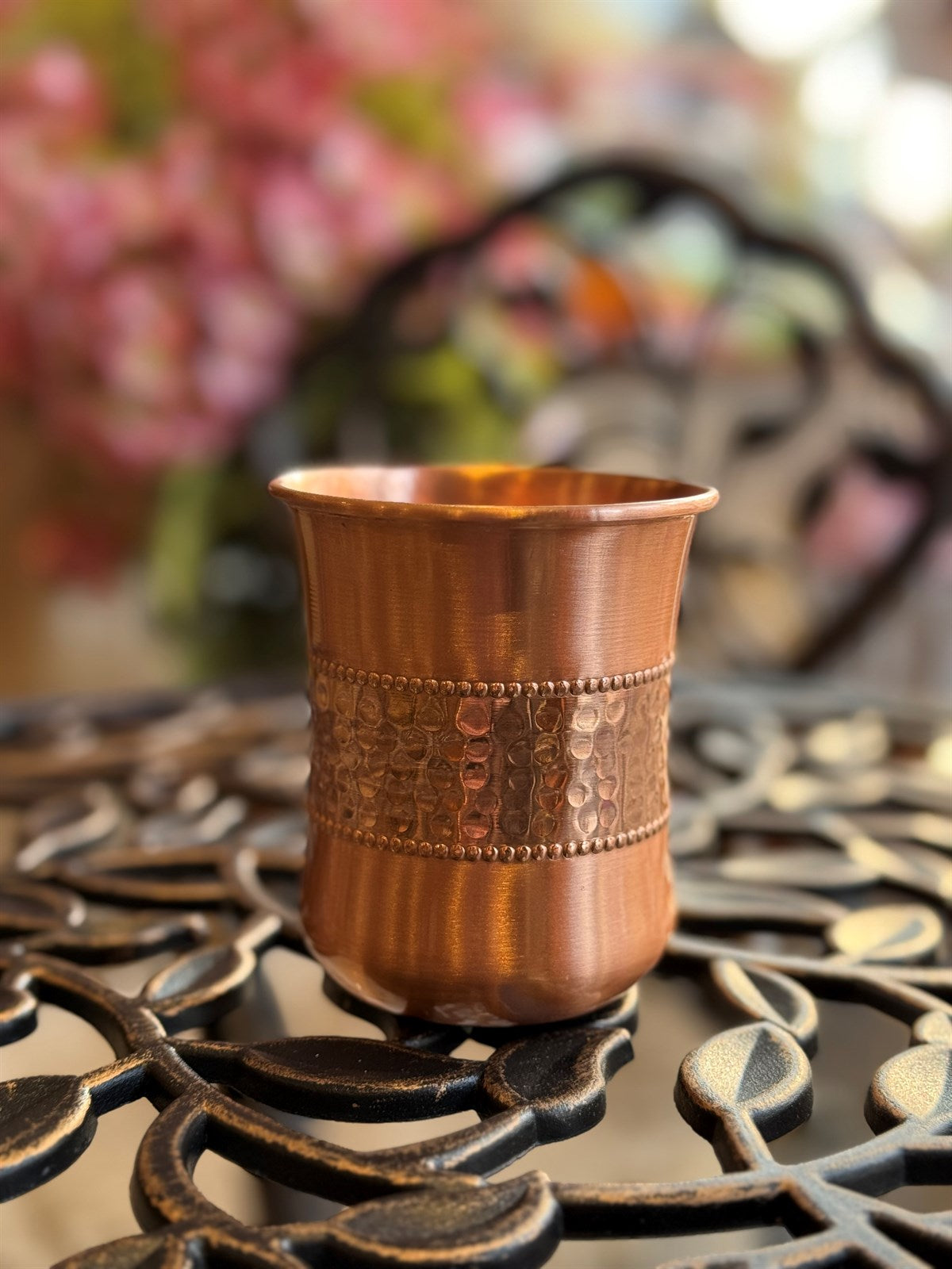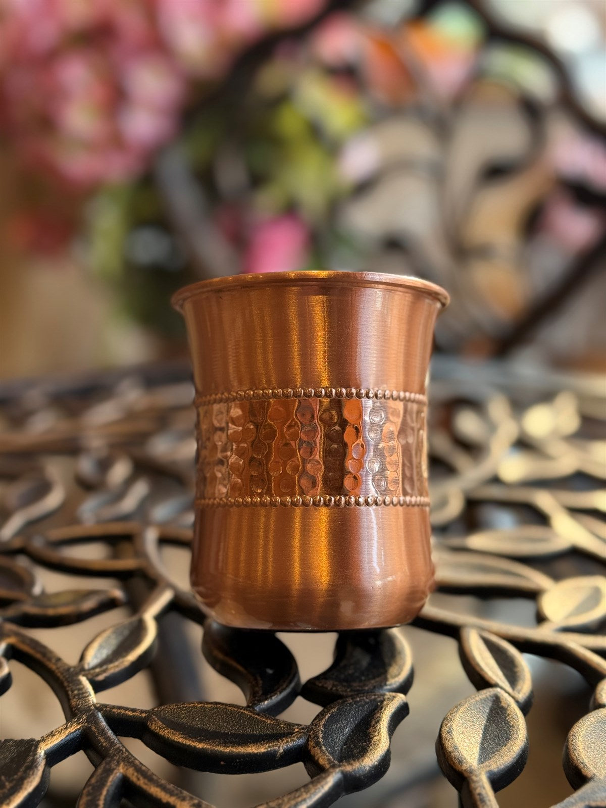 Reiner Kupferbecher, antik geätzt – 300 ml (schwere Ausführung, 105 g)