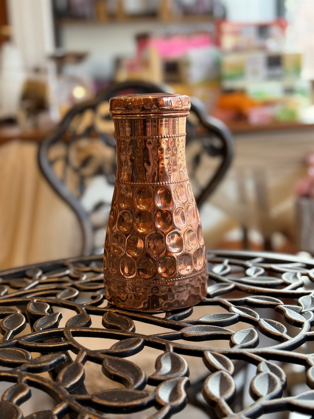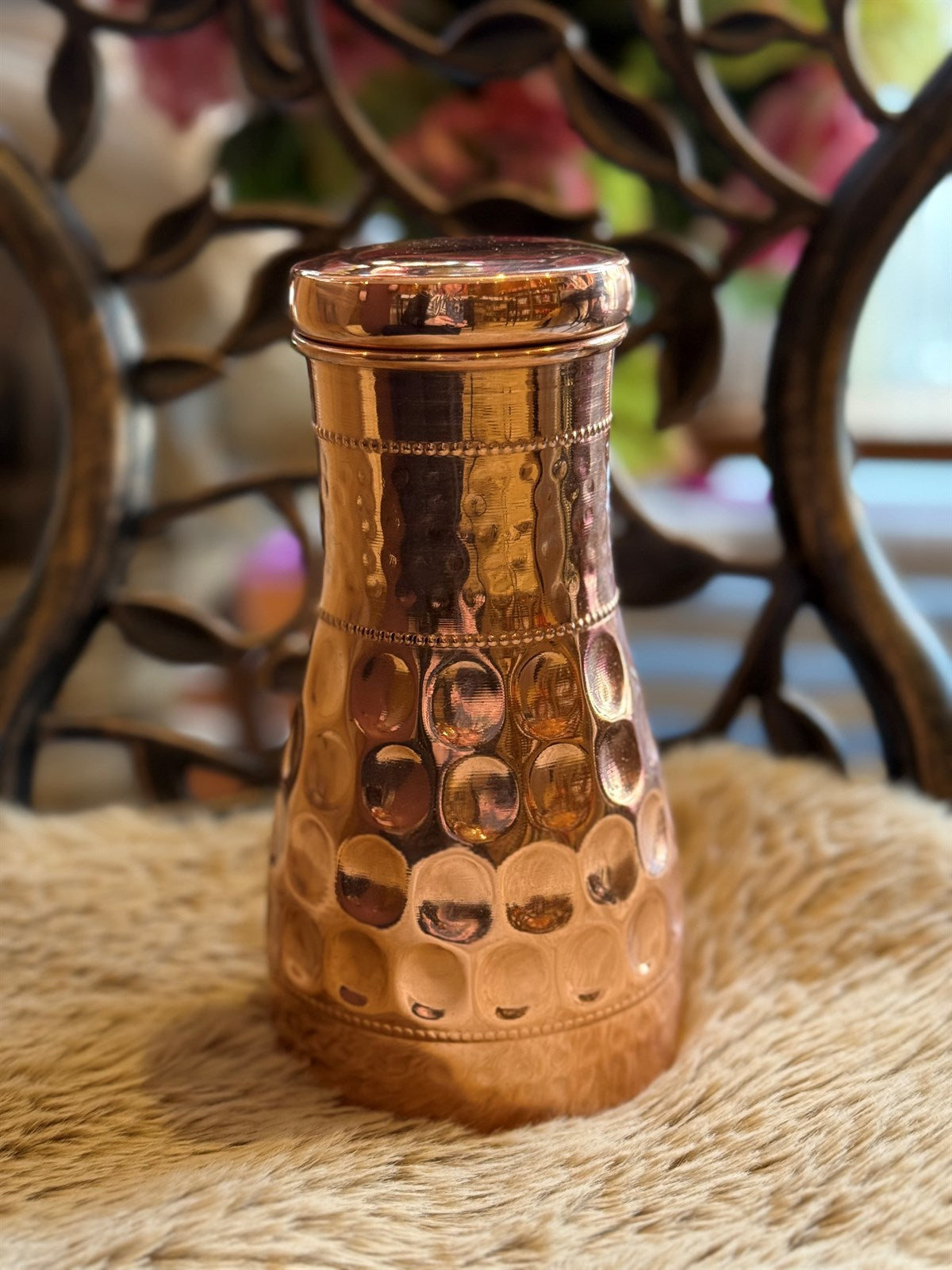 Wasserflasche aus reinem Kupfer, gehämmerter Rand oben, ± 950 ml