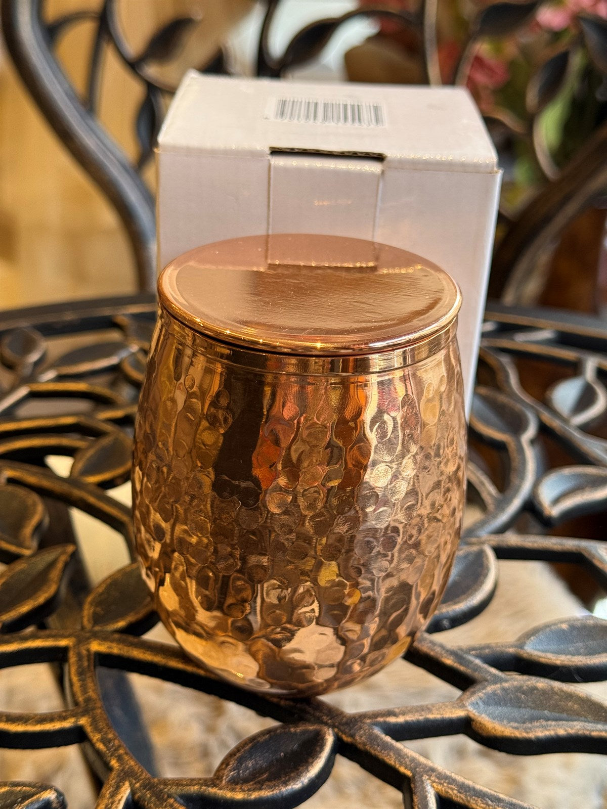 Reiner Kupferbecher, gehämmert, gewölbt, mit Deckel – 300 ml (hochbelastbar)