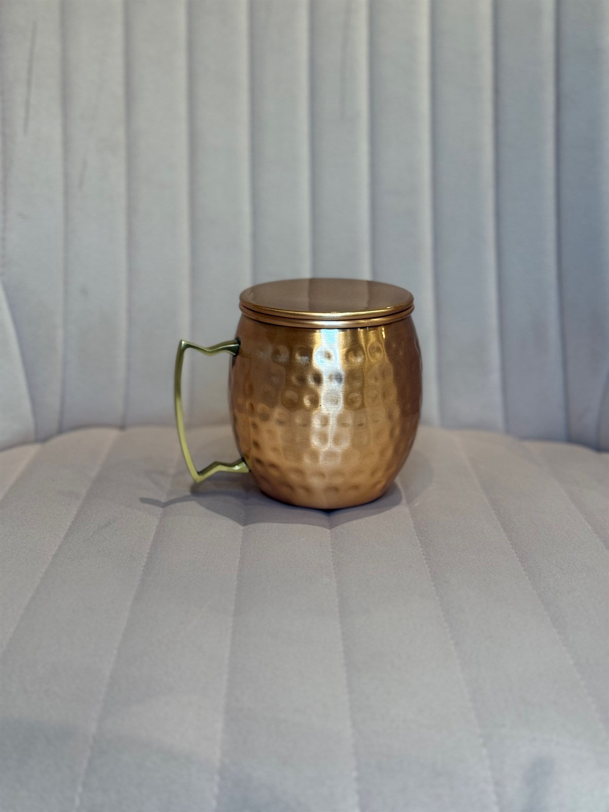 Moscow Mule Becher aus reinem Kupfer, gehämmert, mit Deckel, ± 300 ml