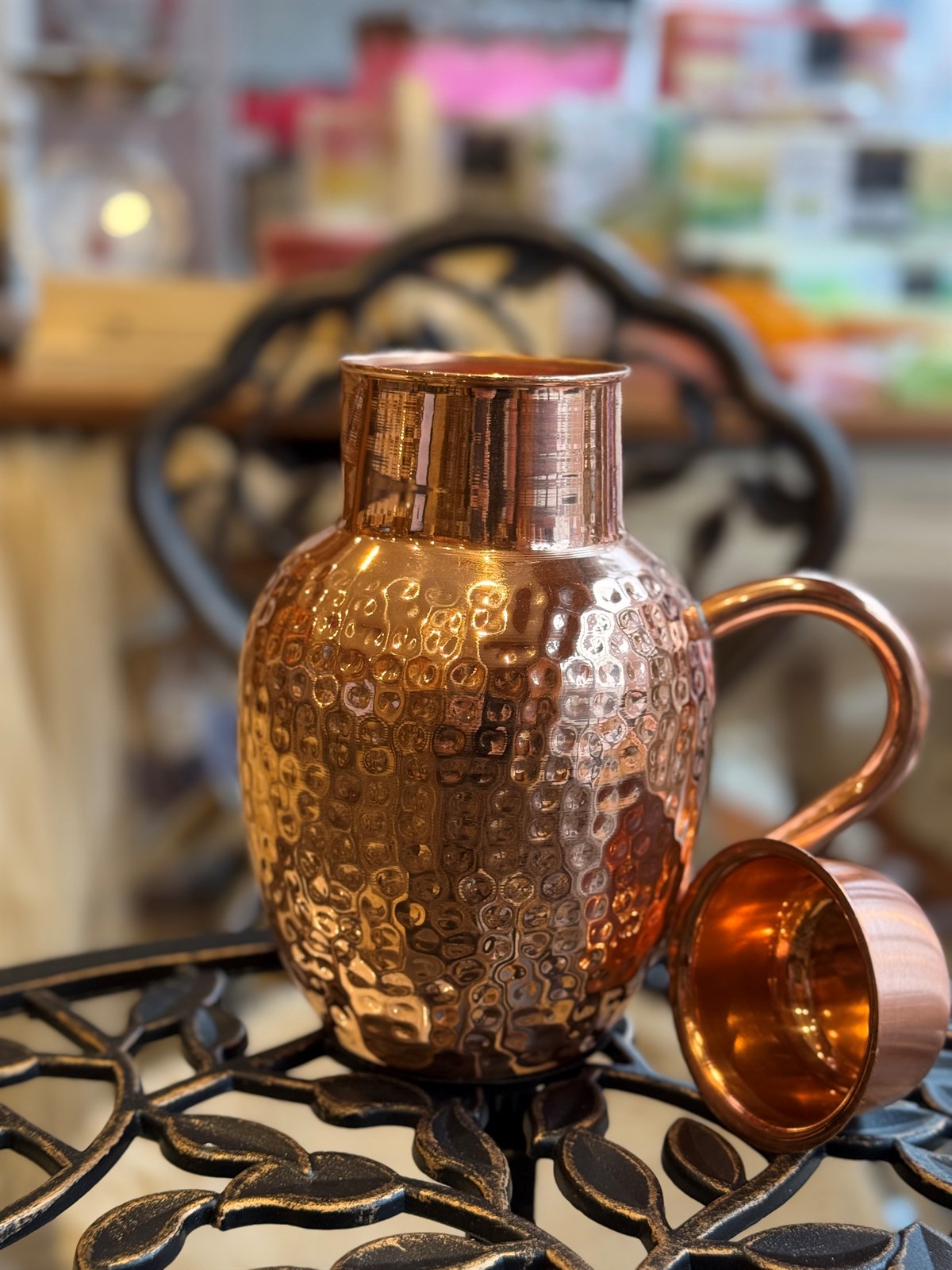 Krug aus gehämmertem reinem Kupfer mit Deckel ± 2 Liter (760 g)