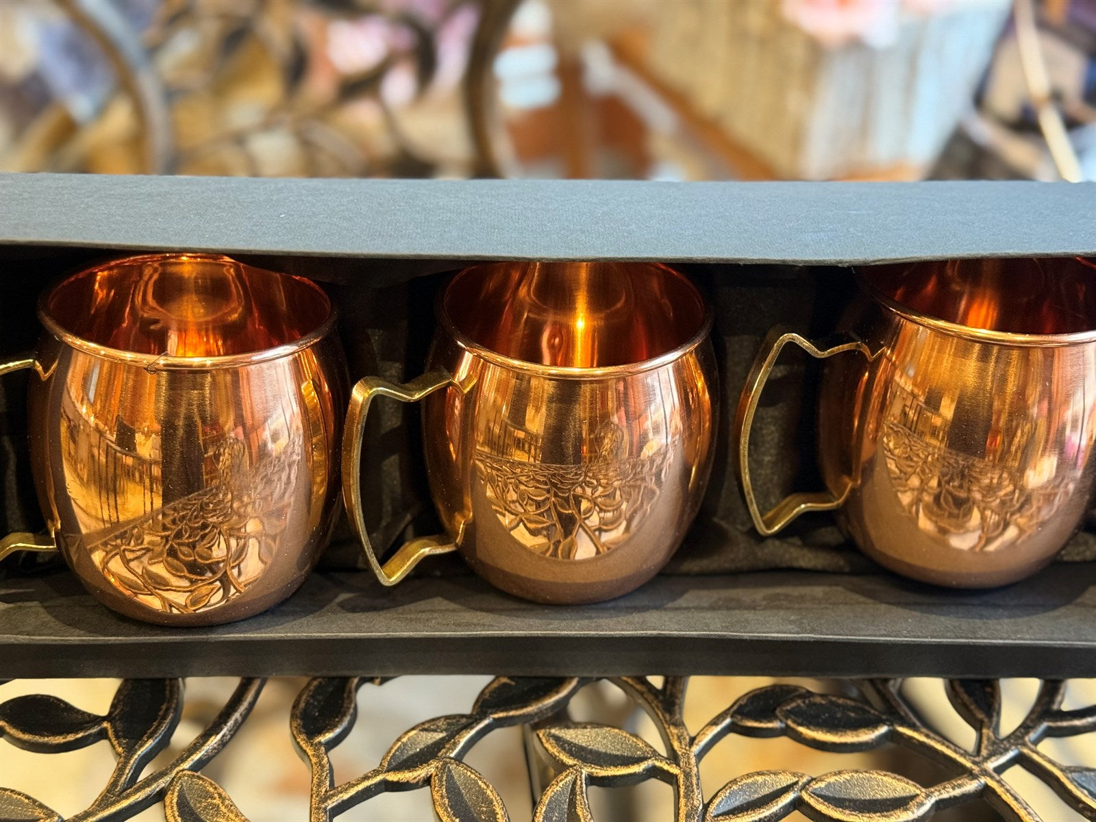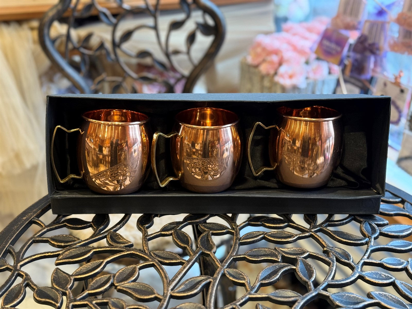 Krugset aus reinem Kupfer mit 4 Tassen Blumenmotiv ± 1,5 Liter
