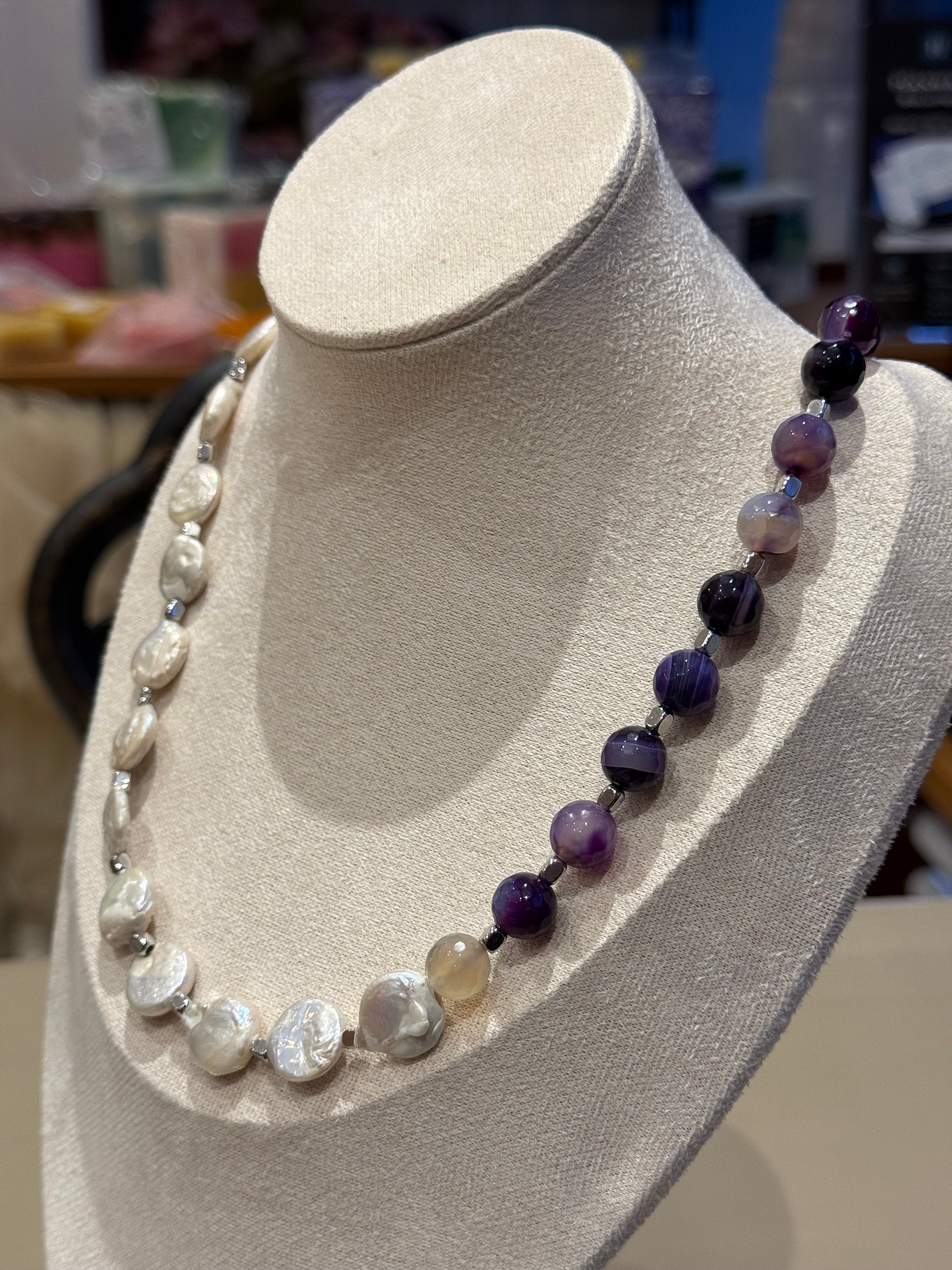 LILA ACHAT BAROCKPERLEN HALSKETTE CA.61CM - UNICAT
