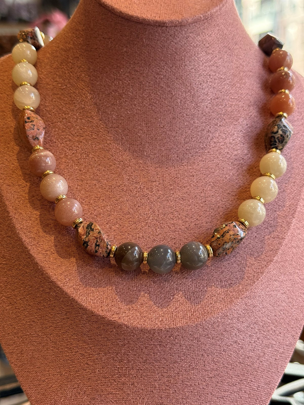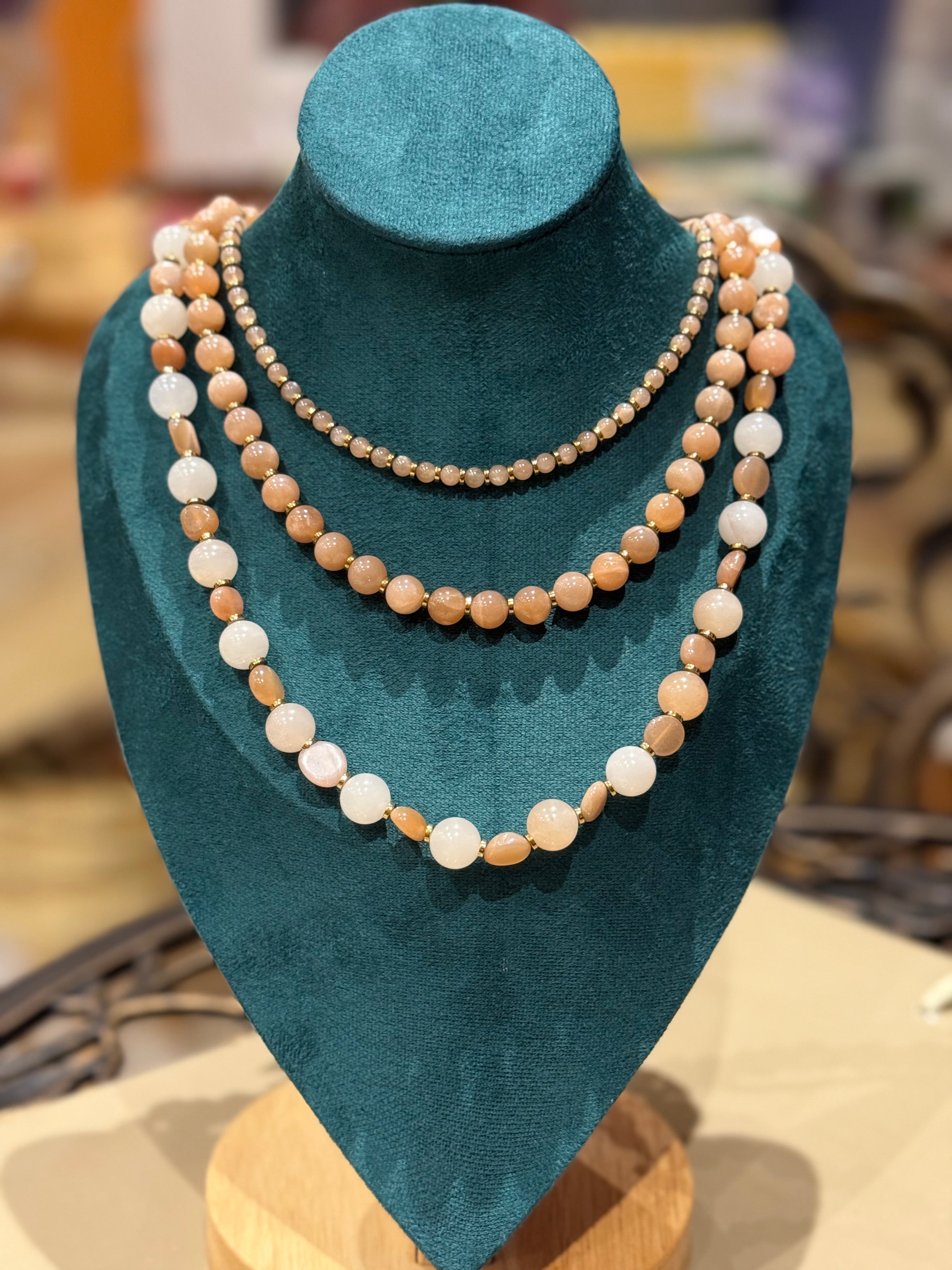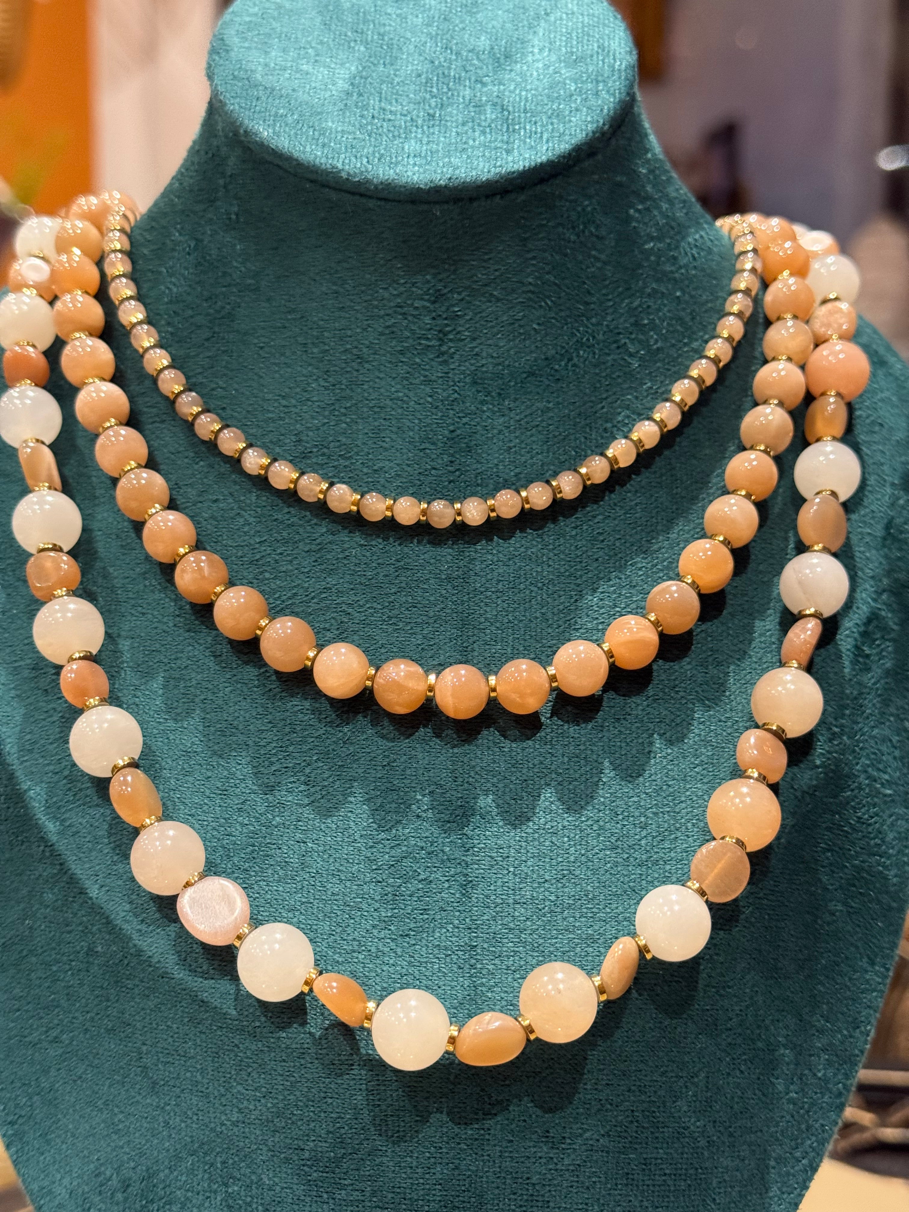 LEOPARDEN JASPIS - SONNENSTEIN - MONDSTEIN HALSKETTE ca 71 cm - UNICAT