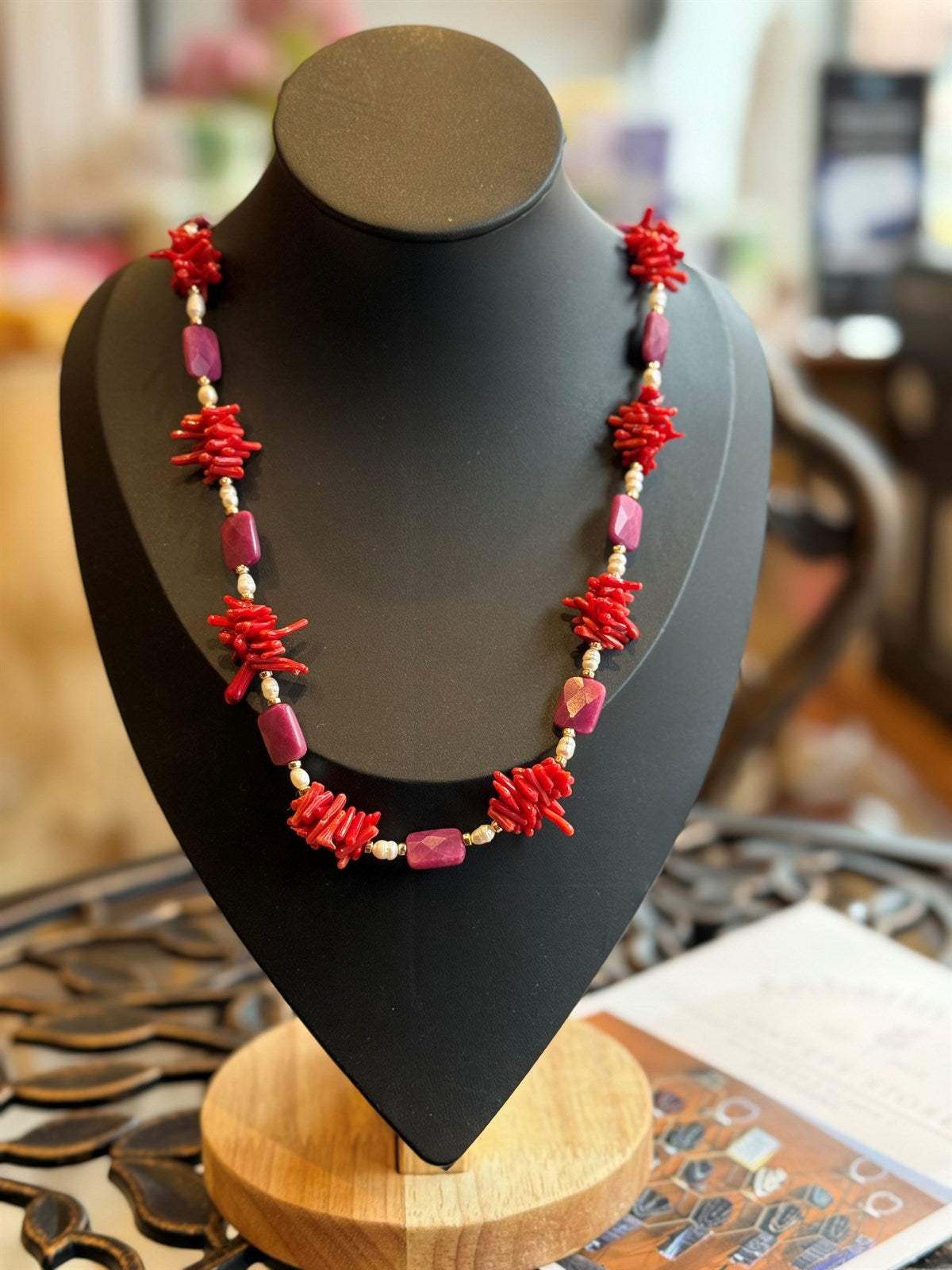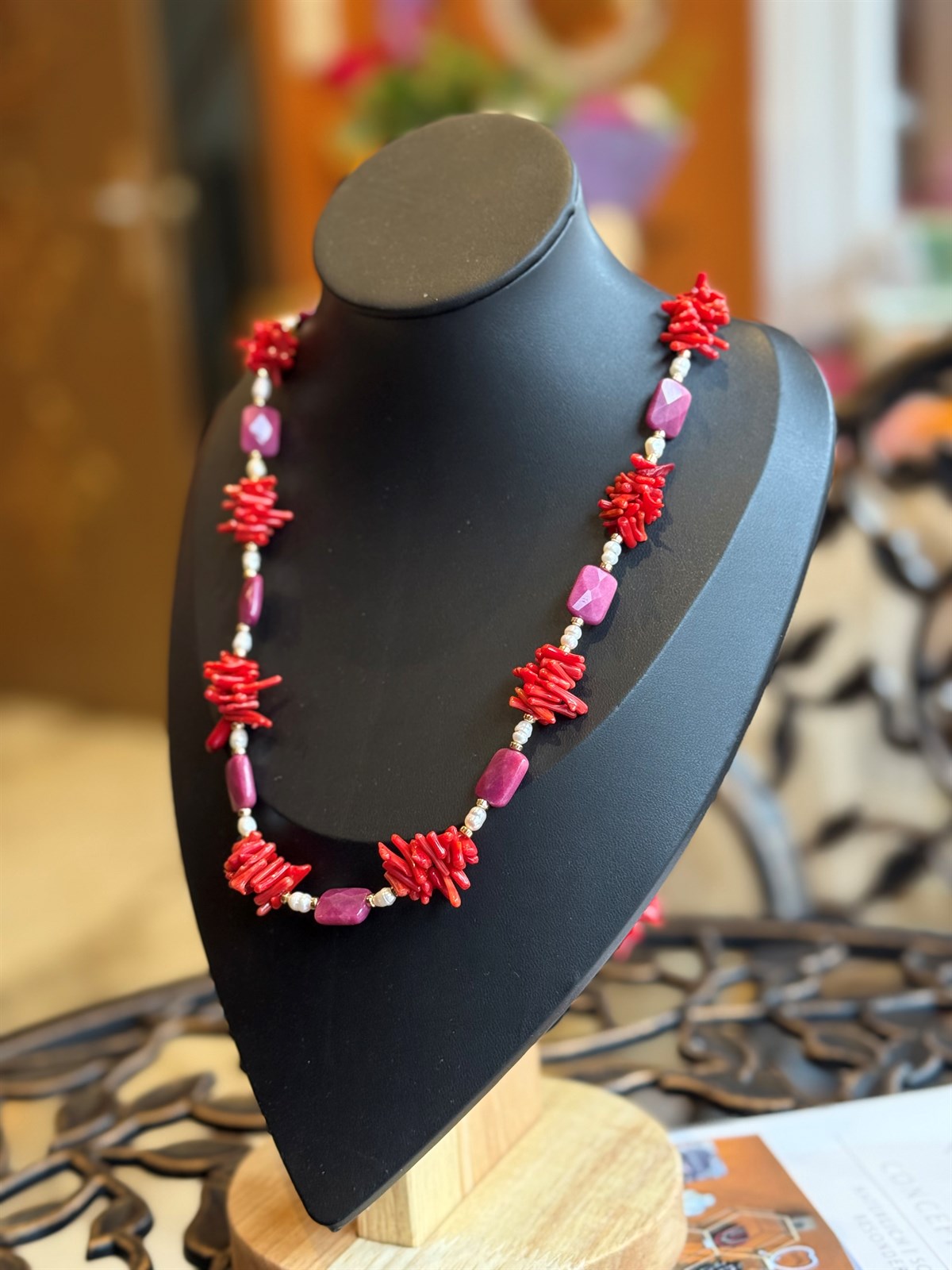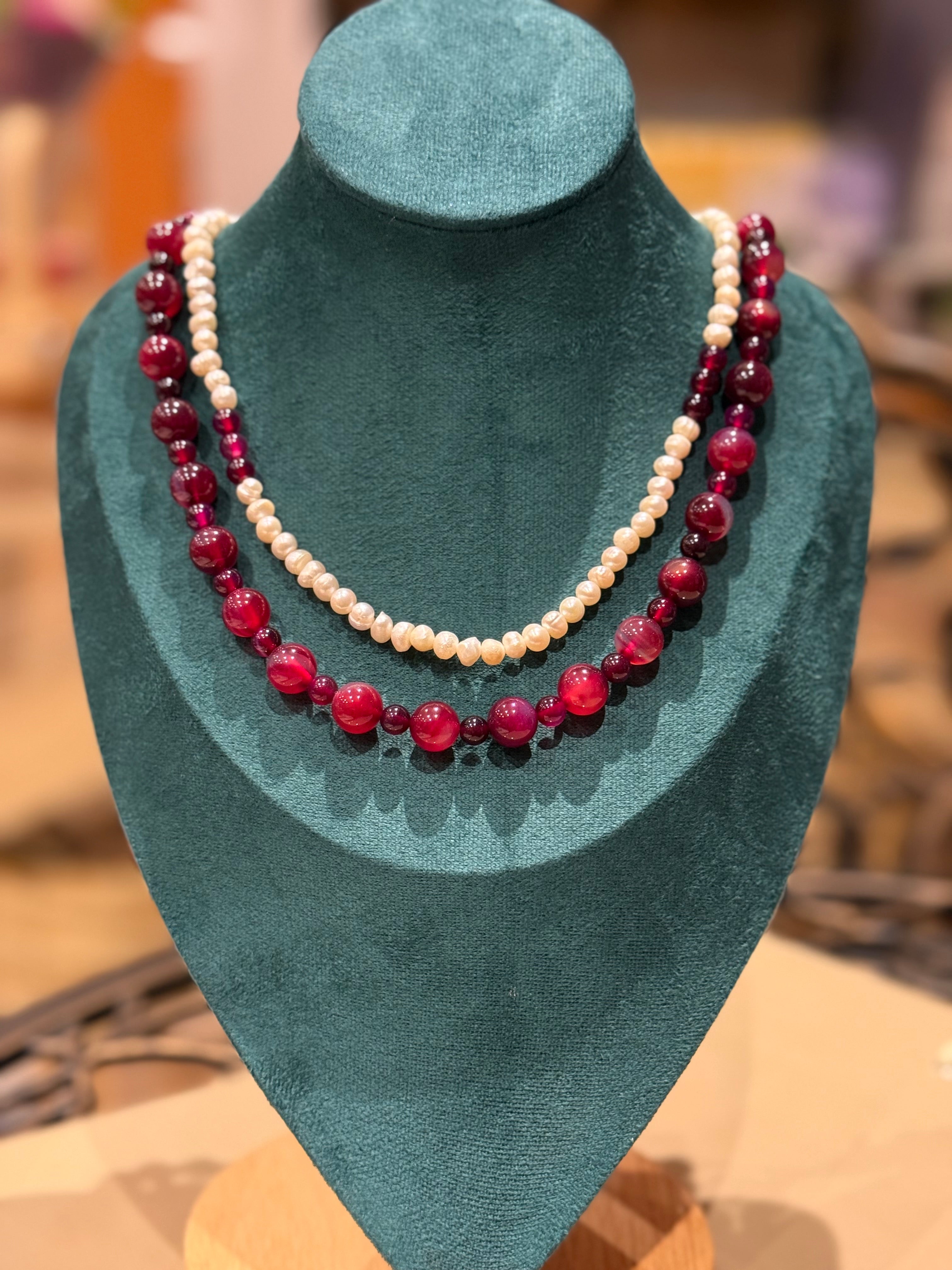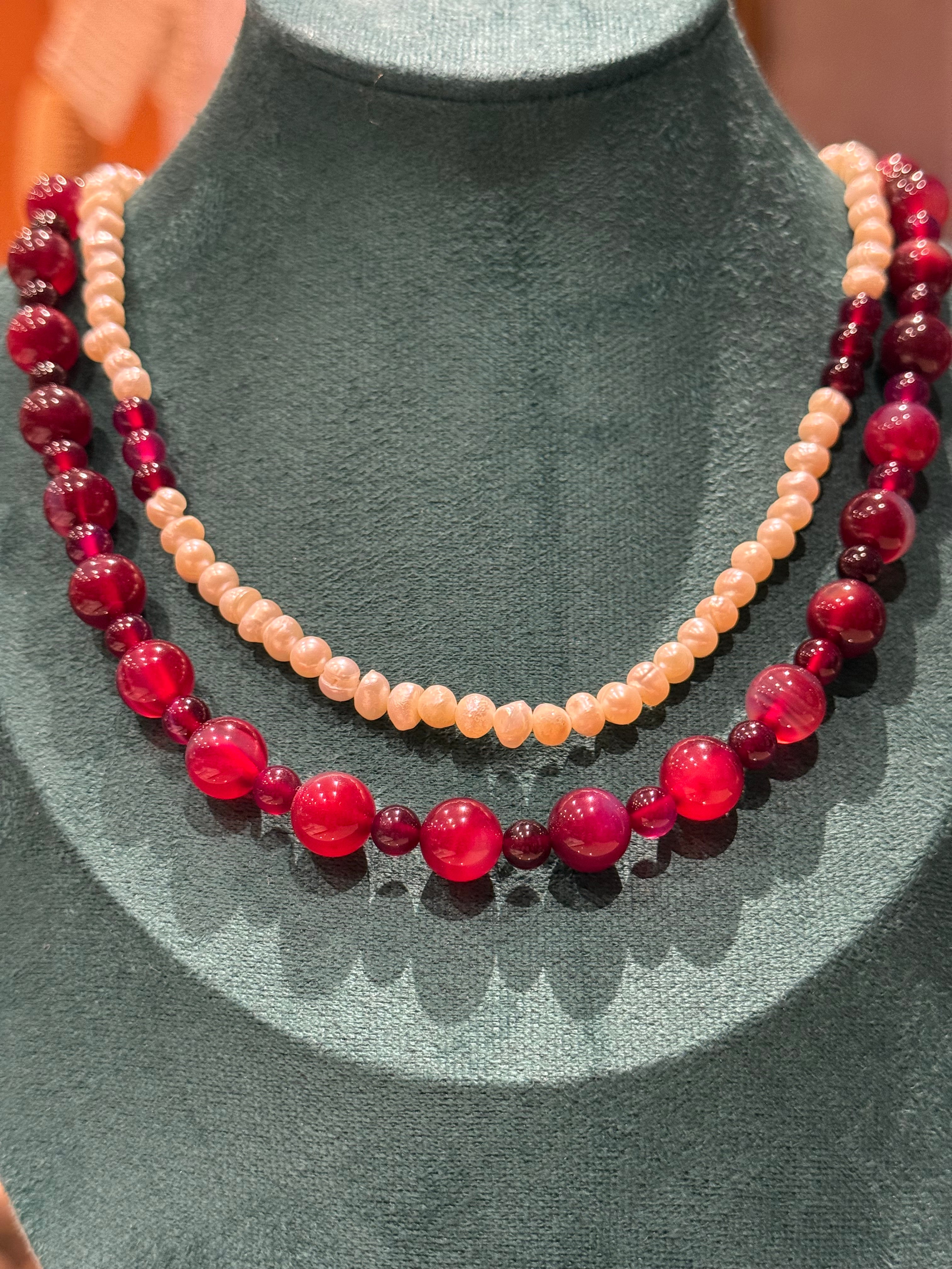 KORALLE - SÜSSWASSERPERLE - RUBIN HALSKETTE ca 82 cm - UNICAT