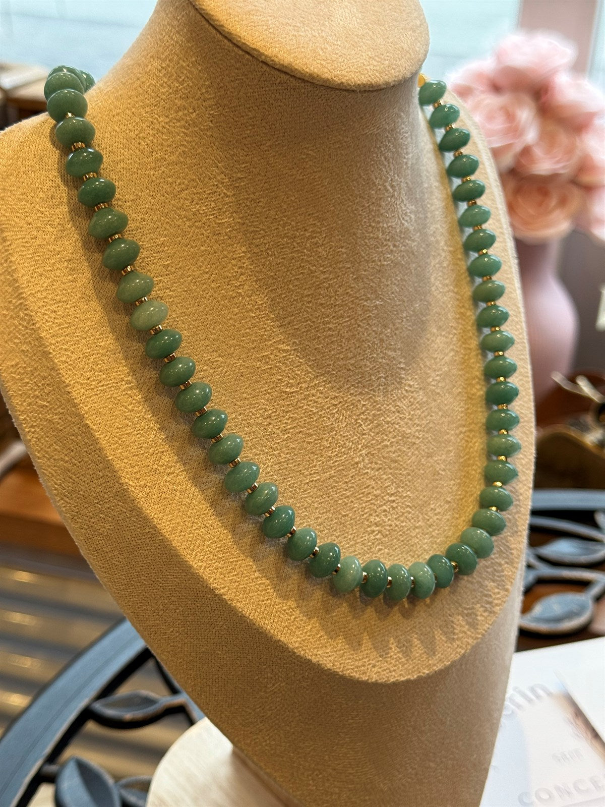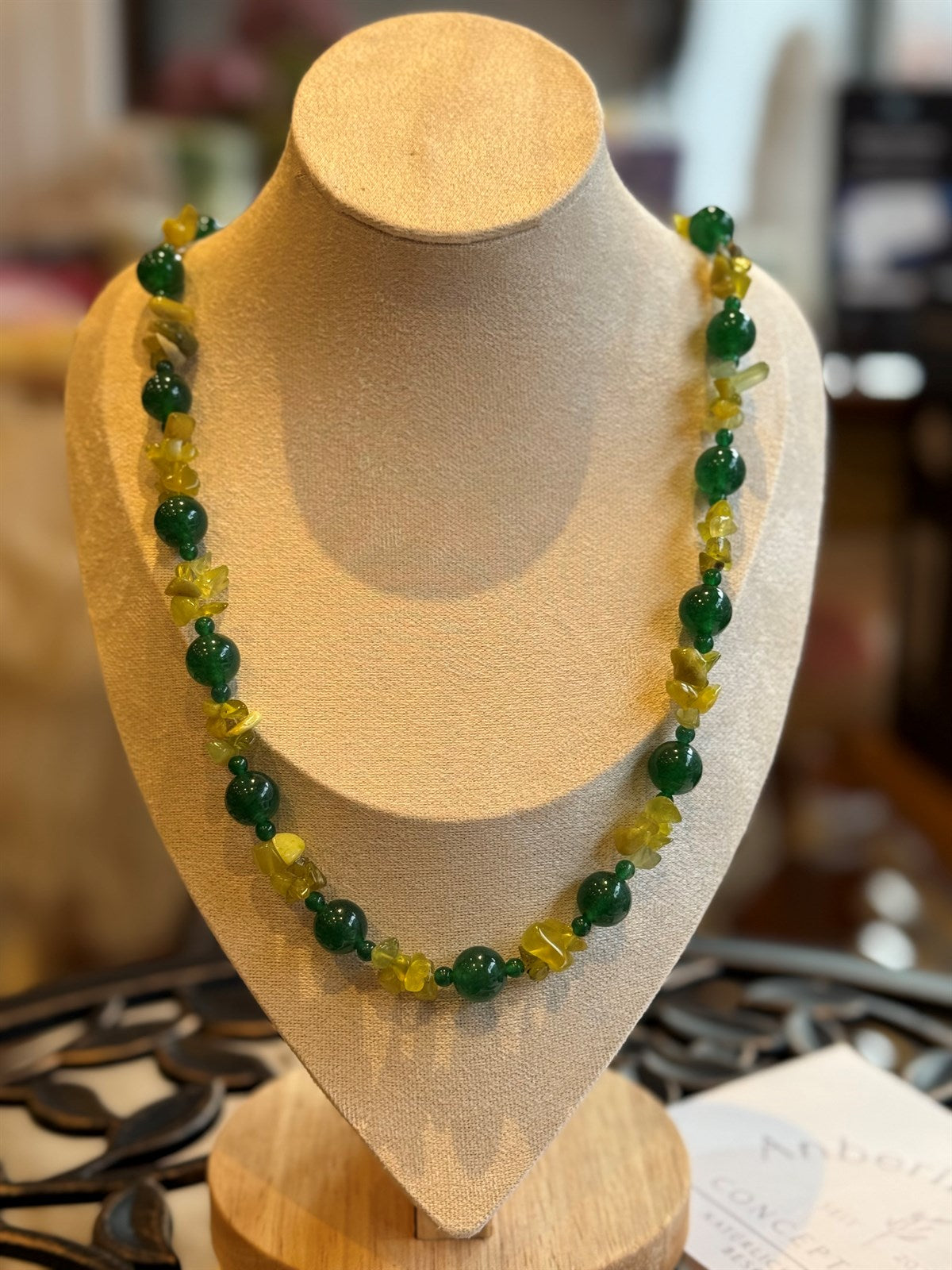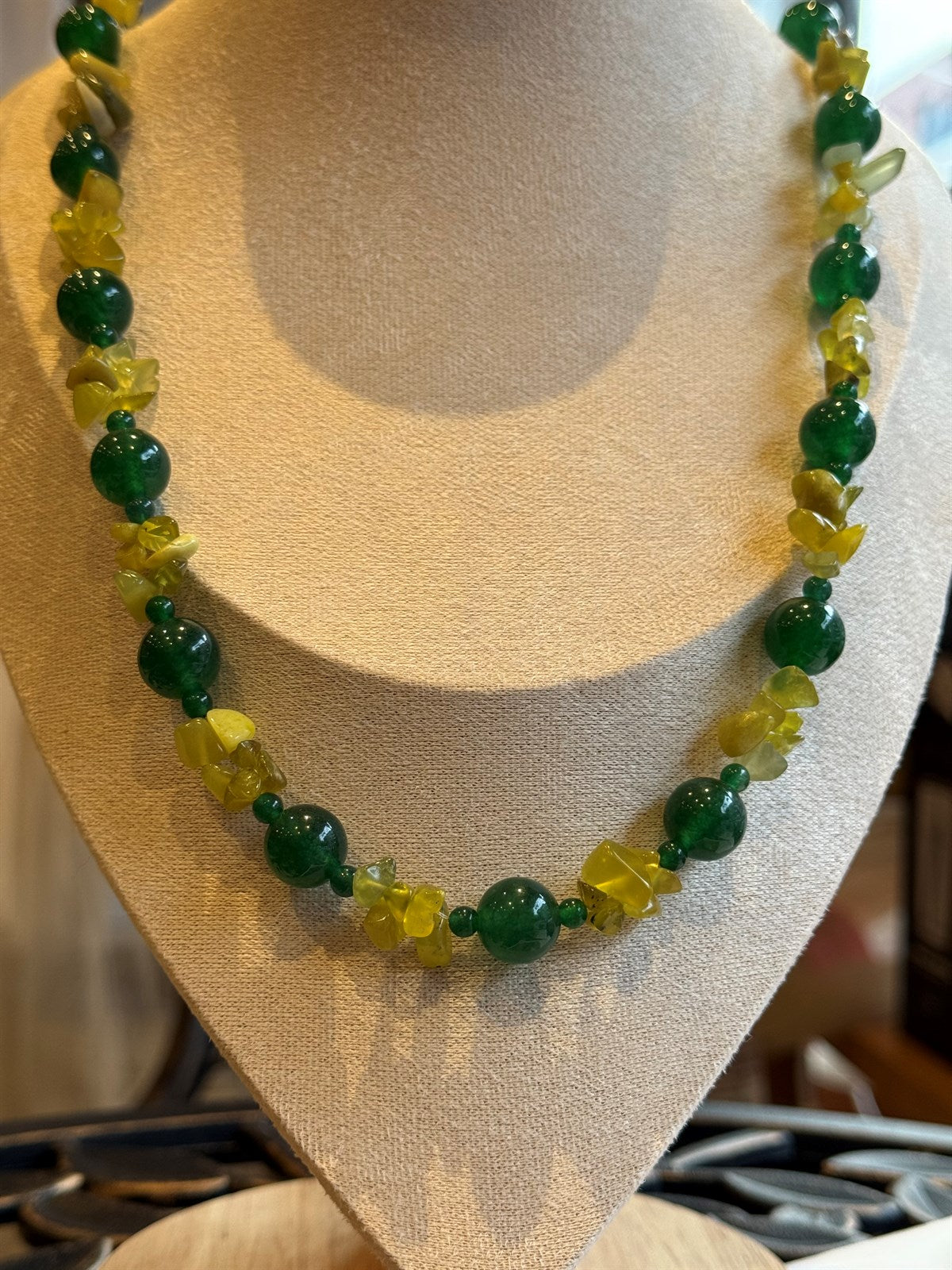GRÜNER JADE - HONIG CALCIT HALSKETTE ca 51 cm - UNICAT