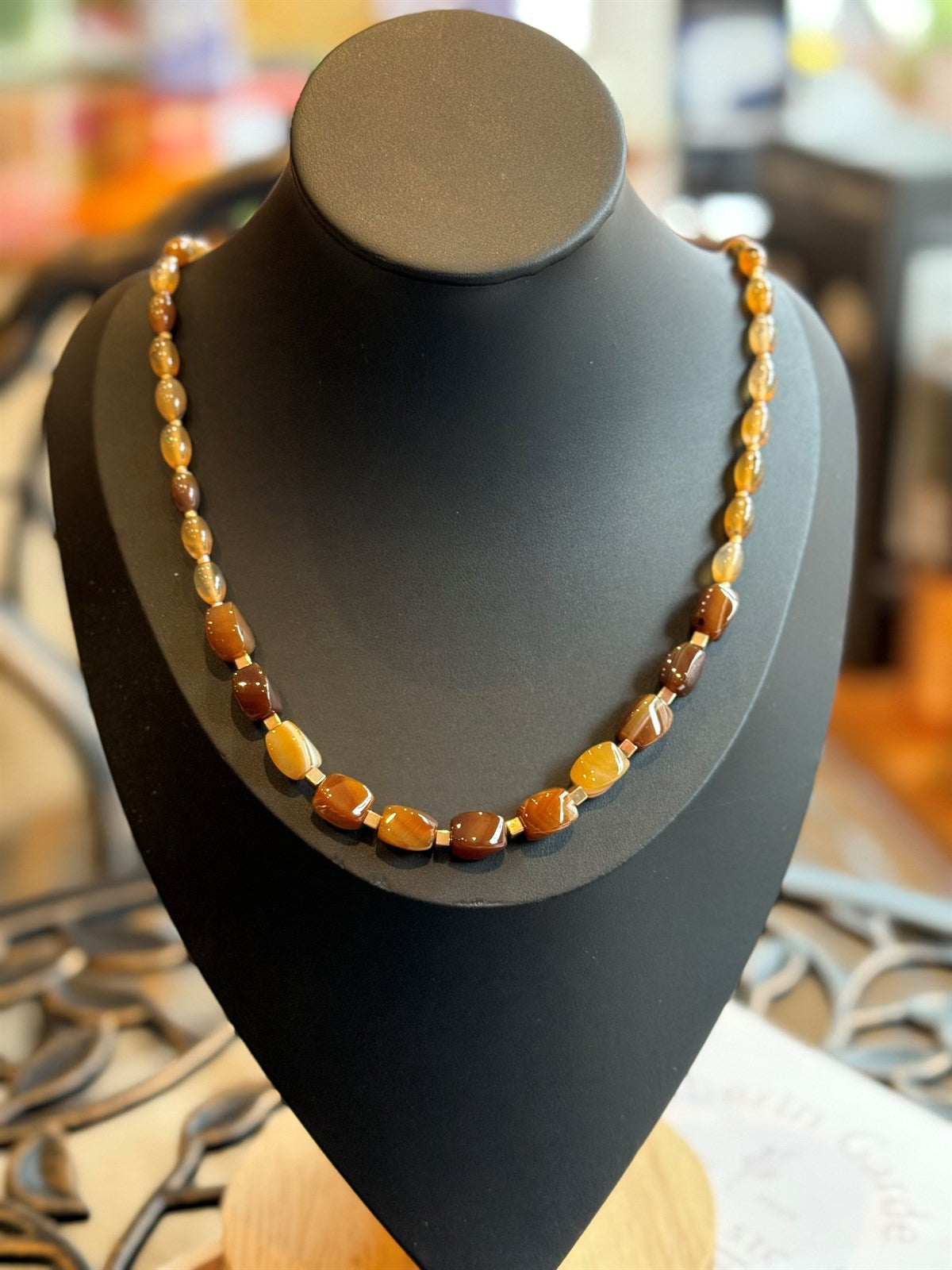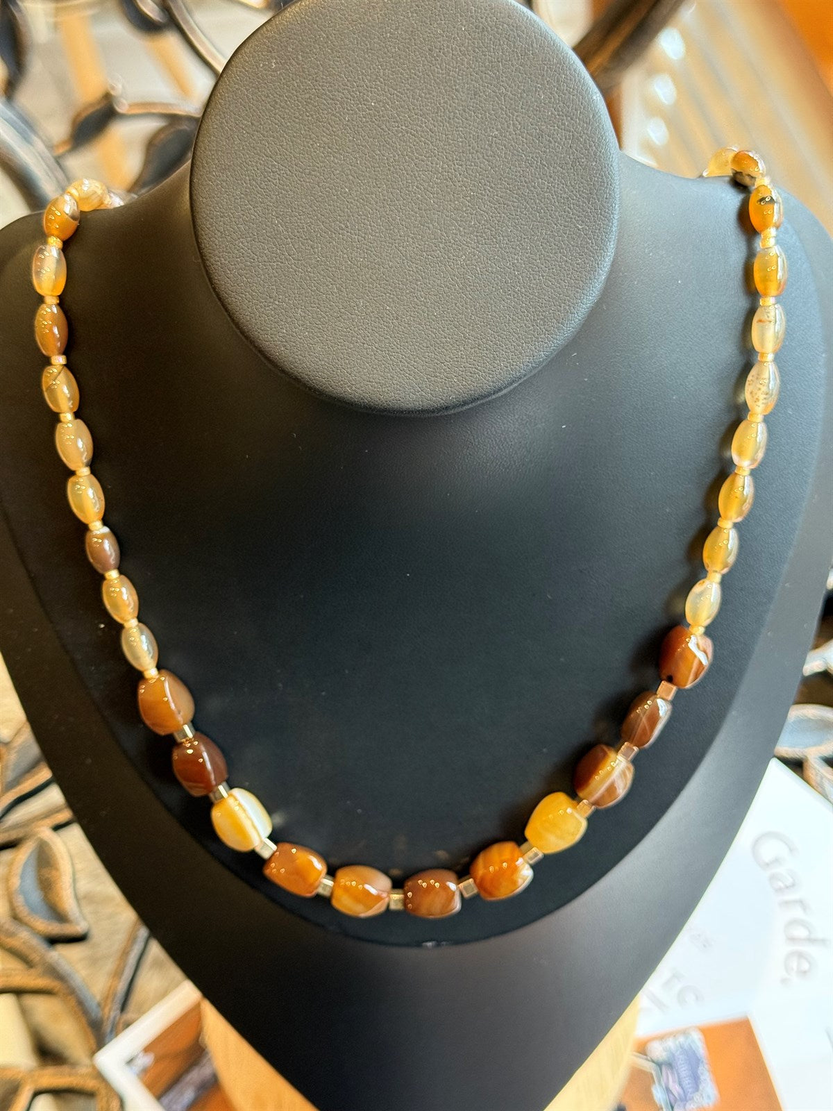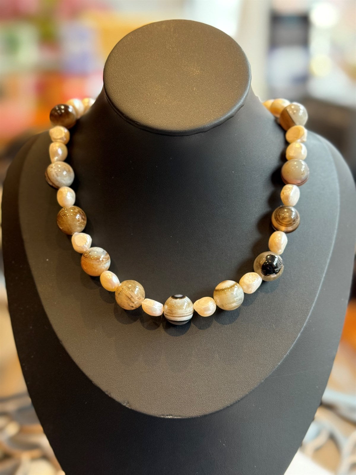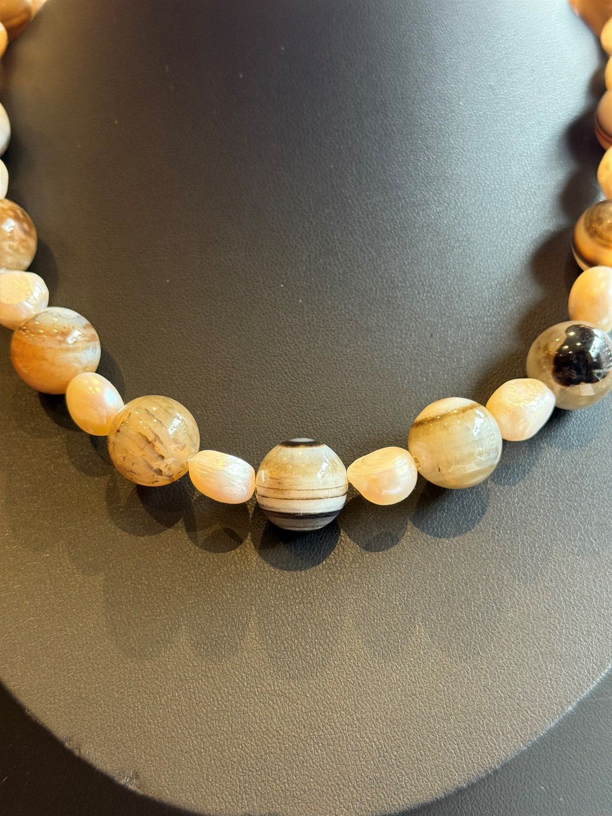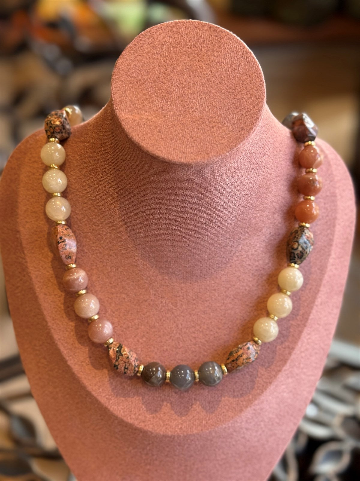 BEIGE TOPAS - ACHAT - HÄMATIT HALSKETTE ca 65 cm - UNICAT