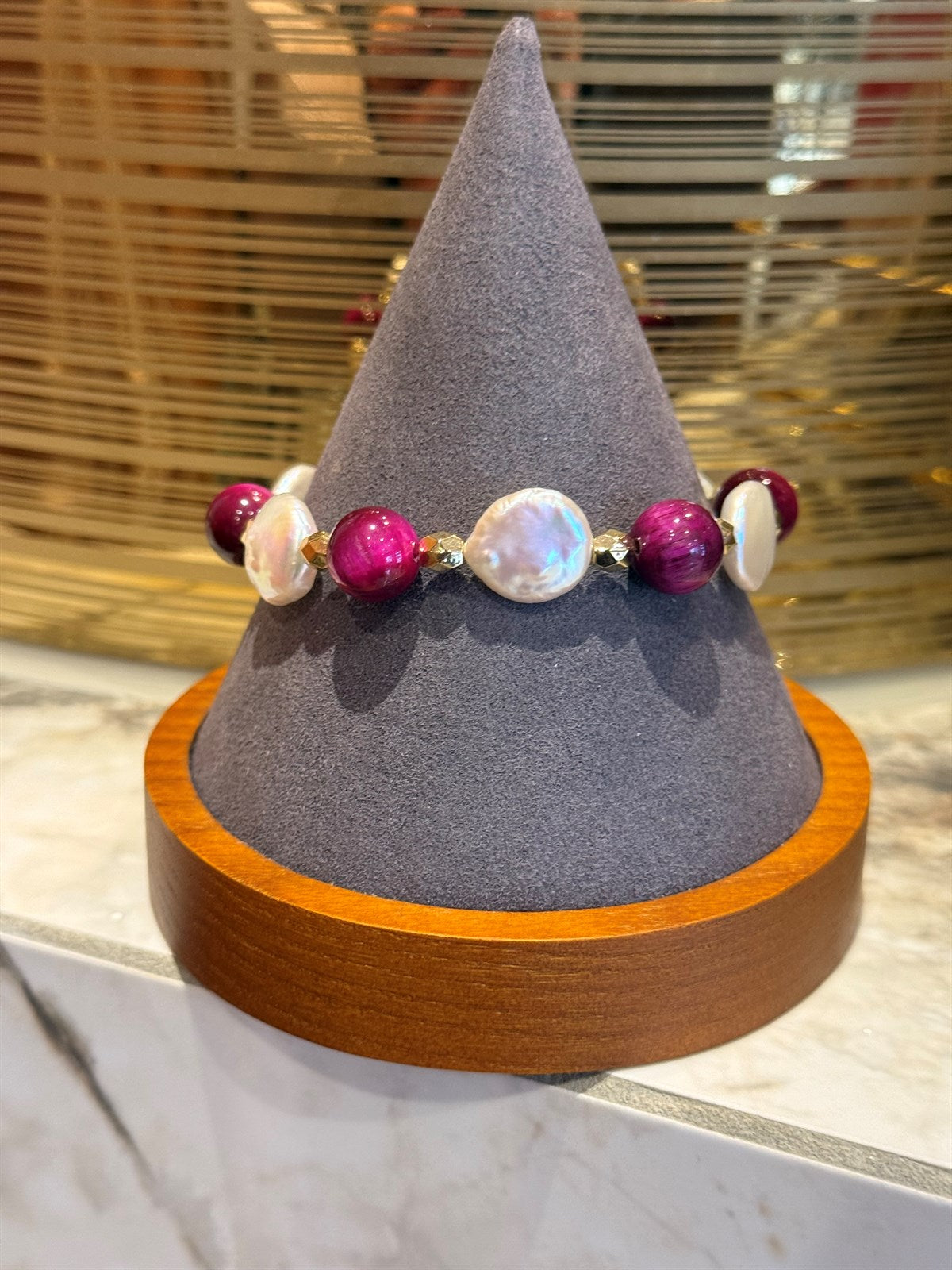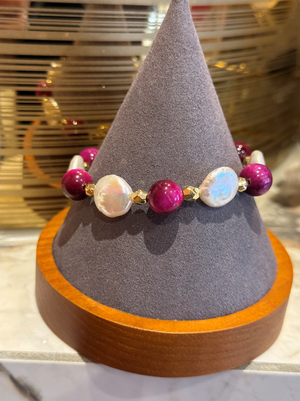 ROSA TIGERAUGE - BAROCK PERLE ARMBAND ca 19 cm - UNICAT