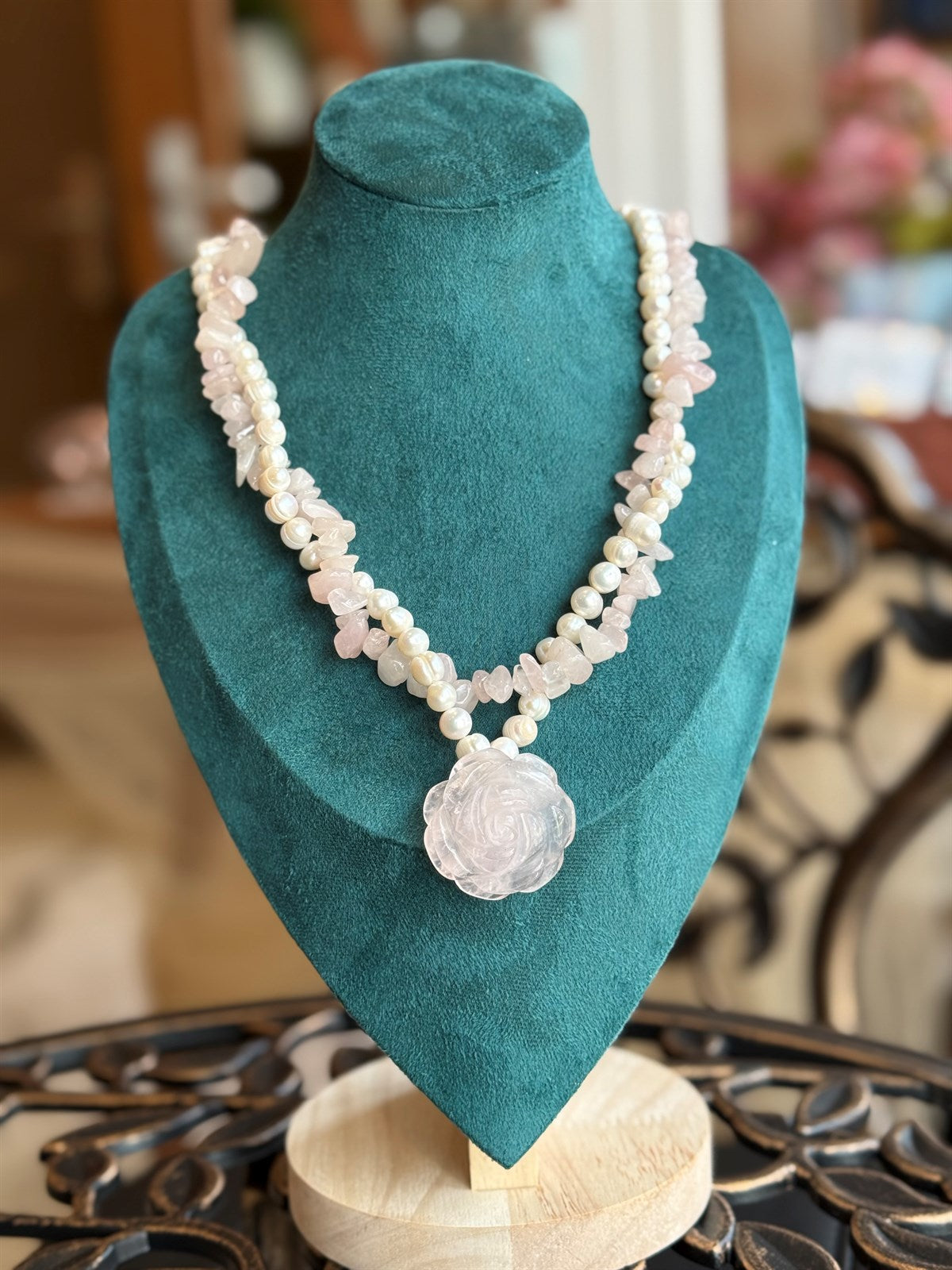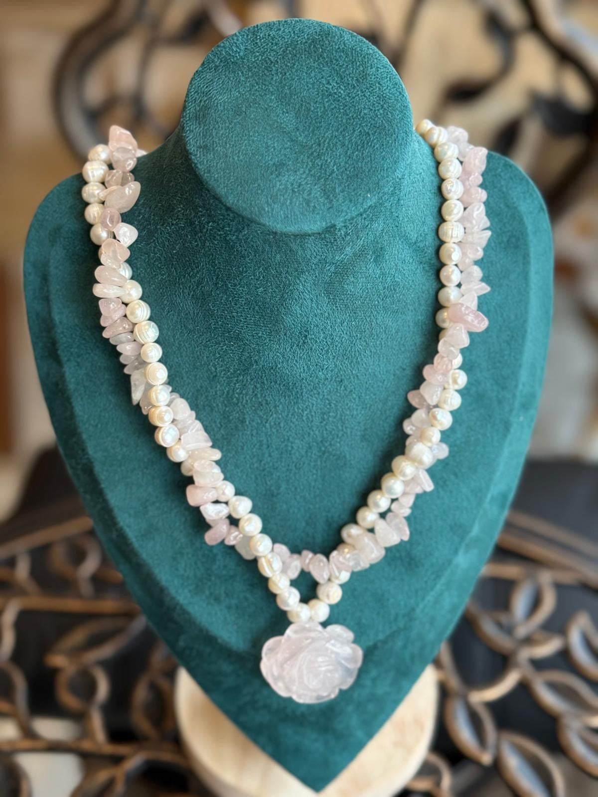 ROSENQUARZ - PERLE HALSKETTE ca52 cm - UNICAT