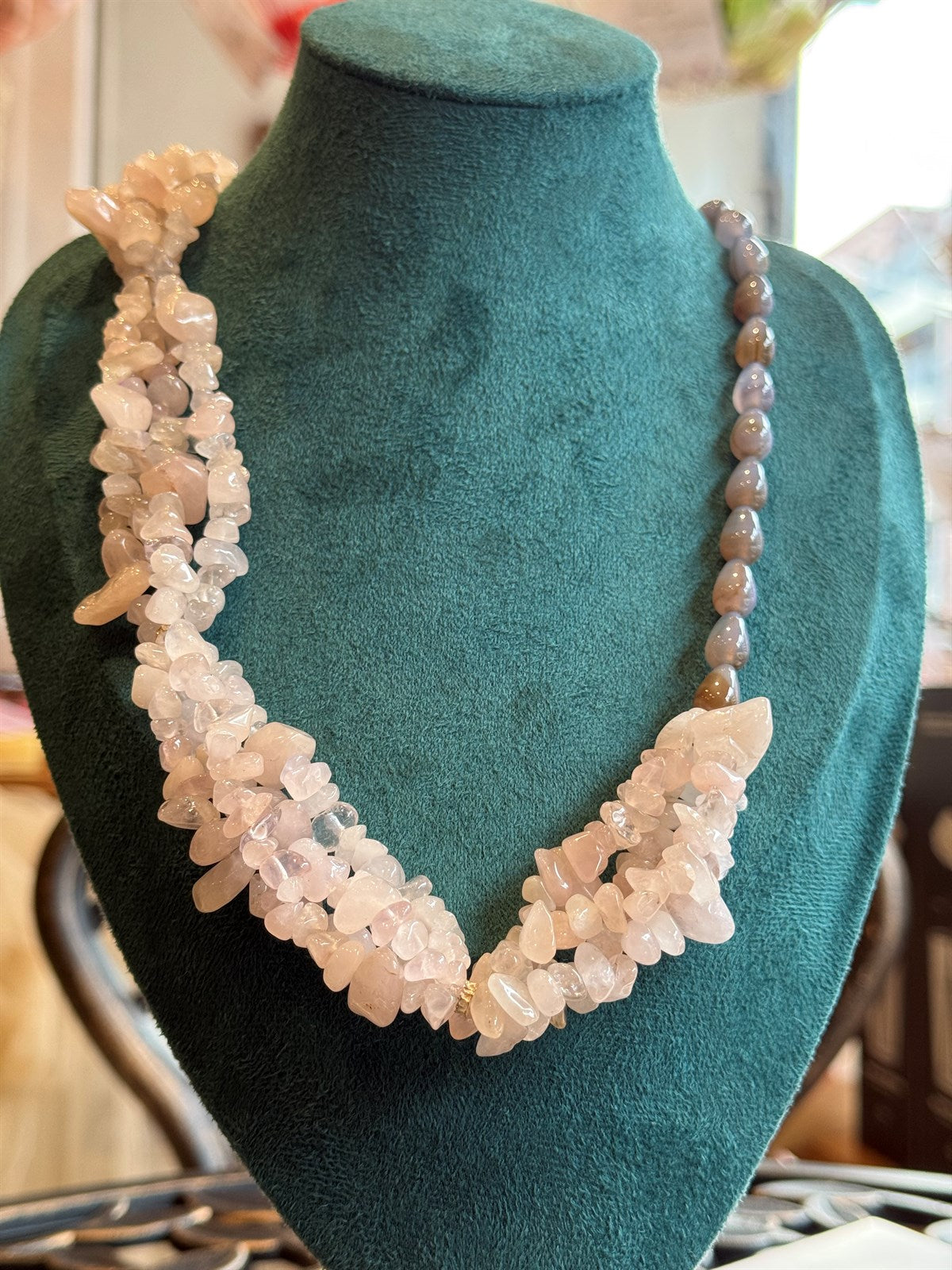 ROSENQUARZ - BLAUER ACHAT - SILBER HALSKETTE ca 77cm - UNICAT
