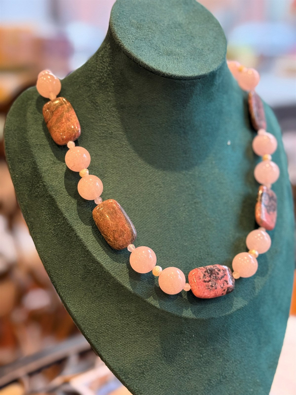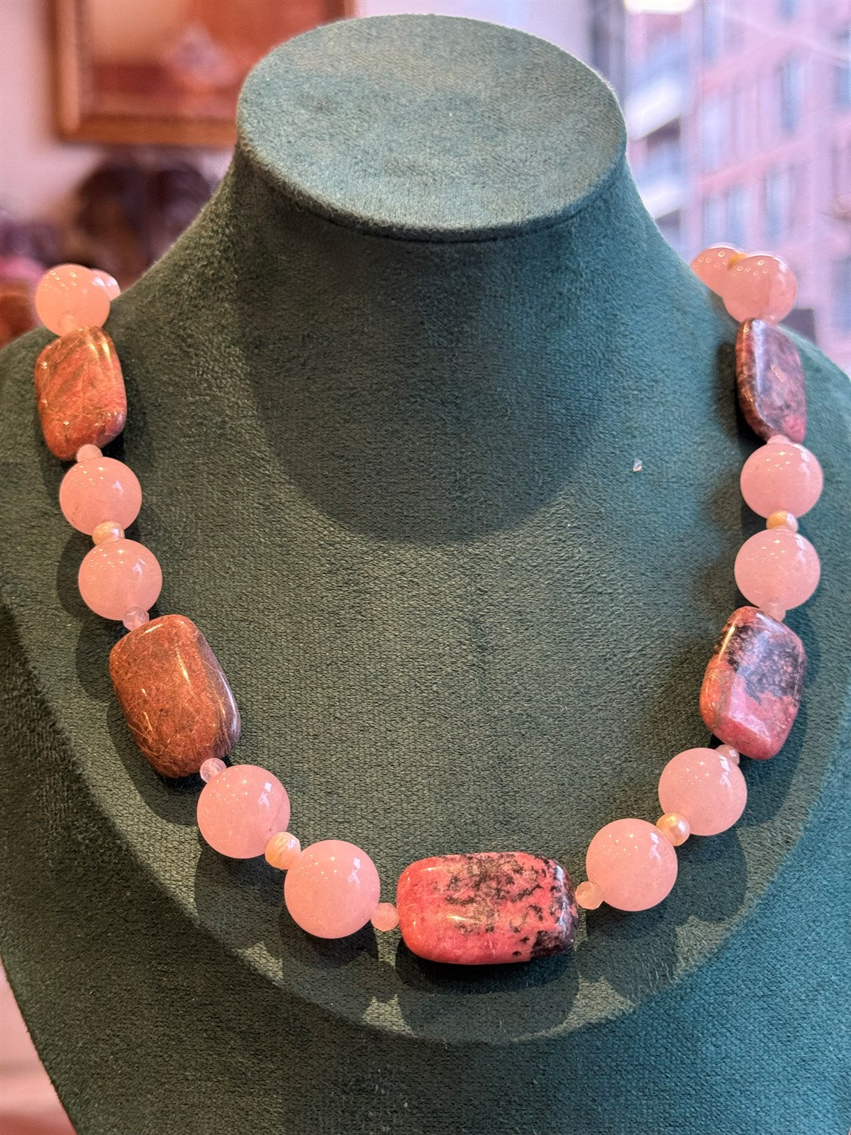 RHODONITE - ROSENQUARTZ HALSKETTE ca 44 cm - UNICAT