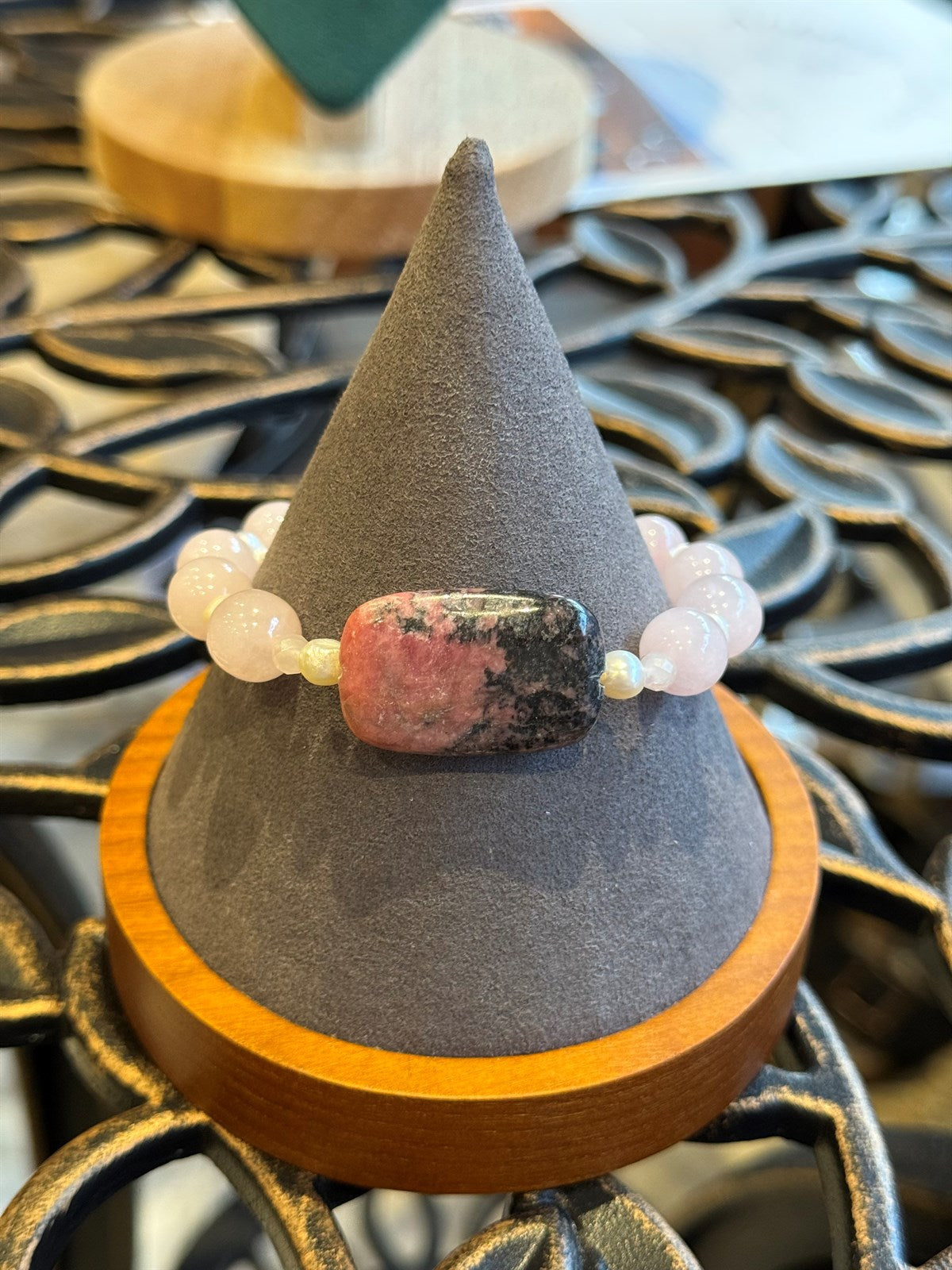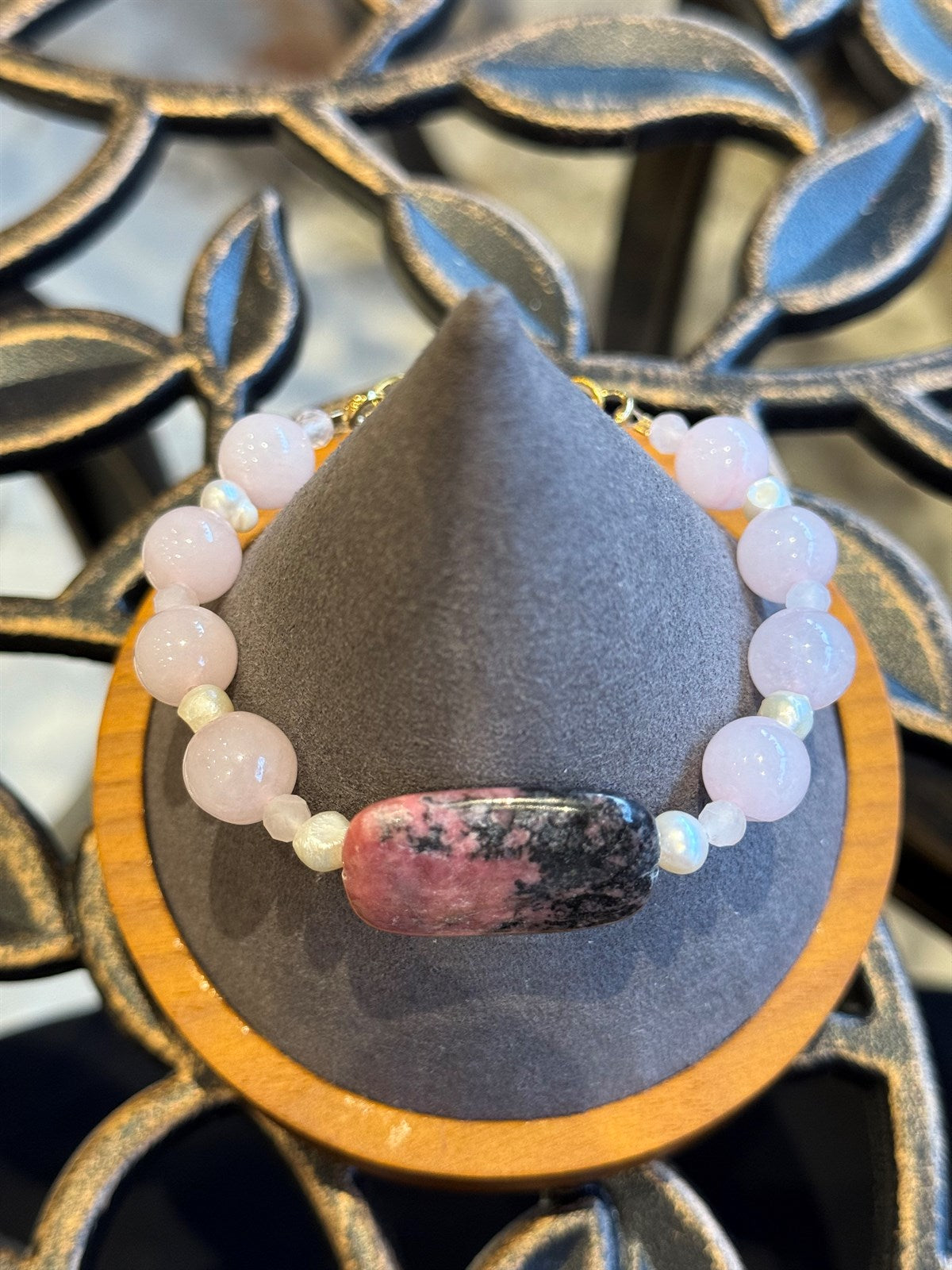 RHODONIT- PERLE- ROSENQUARZ ARMBAND ca 20 cm - UNICAT