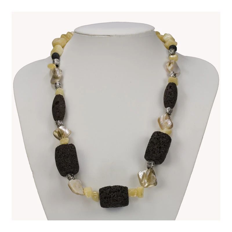 Halskette Braune Lava/Calcit