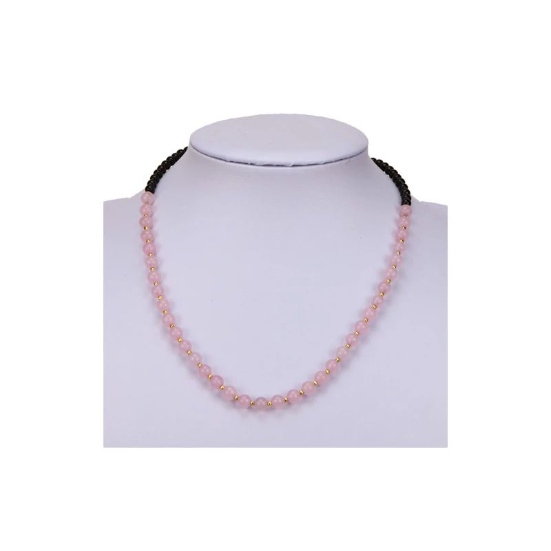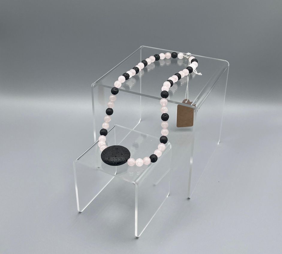 Halskette Rosenquarz/Lava, Kreis