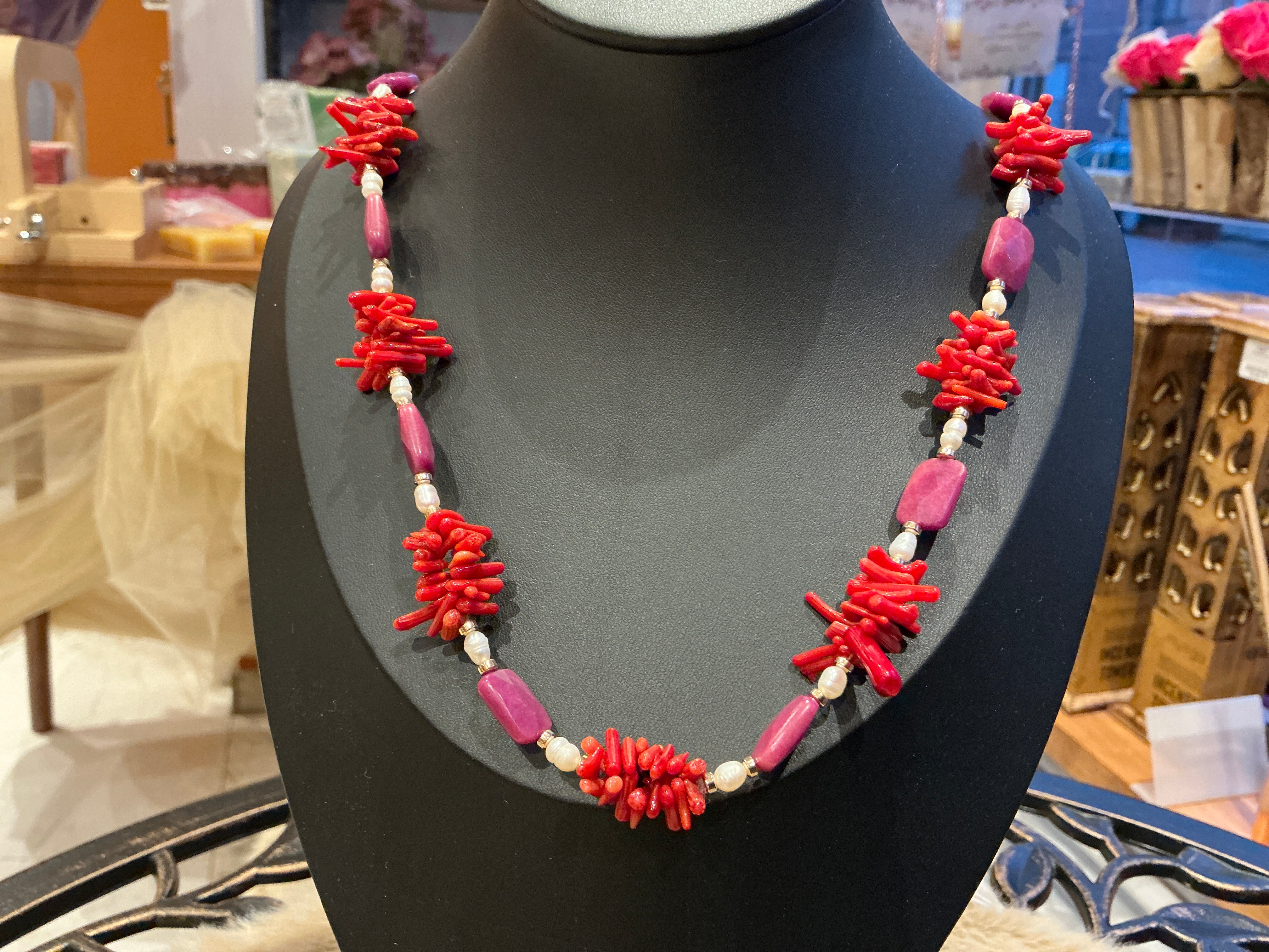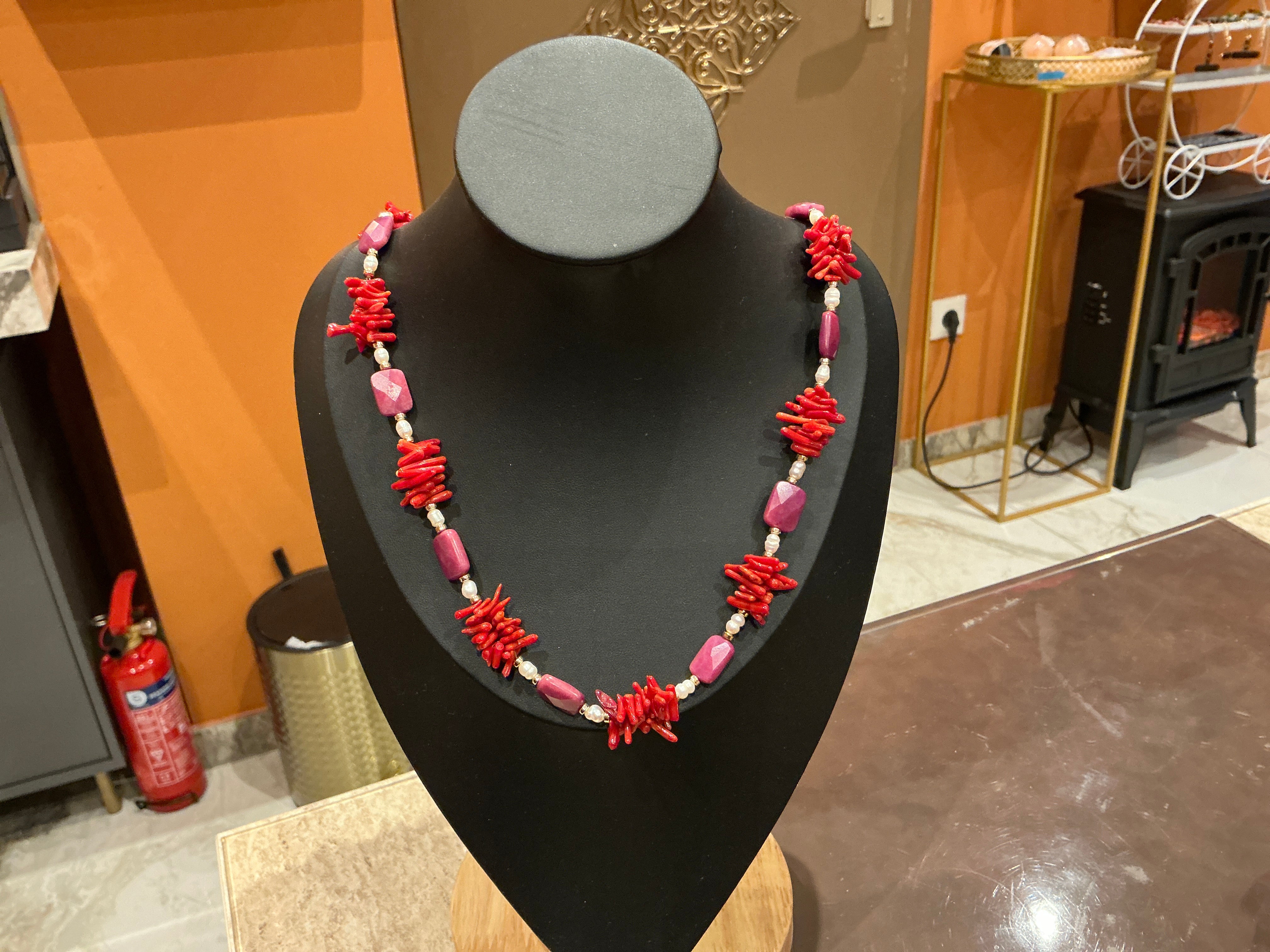 CORALLE - SÜSSWASSERPERLE- RUBIN ca.82 cm - UNICAT