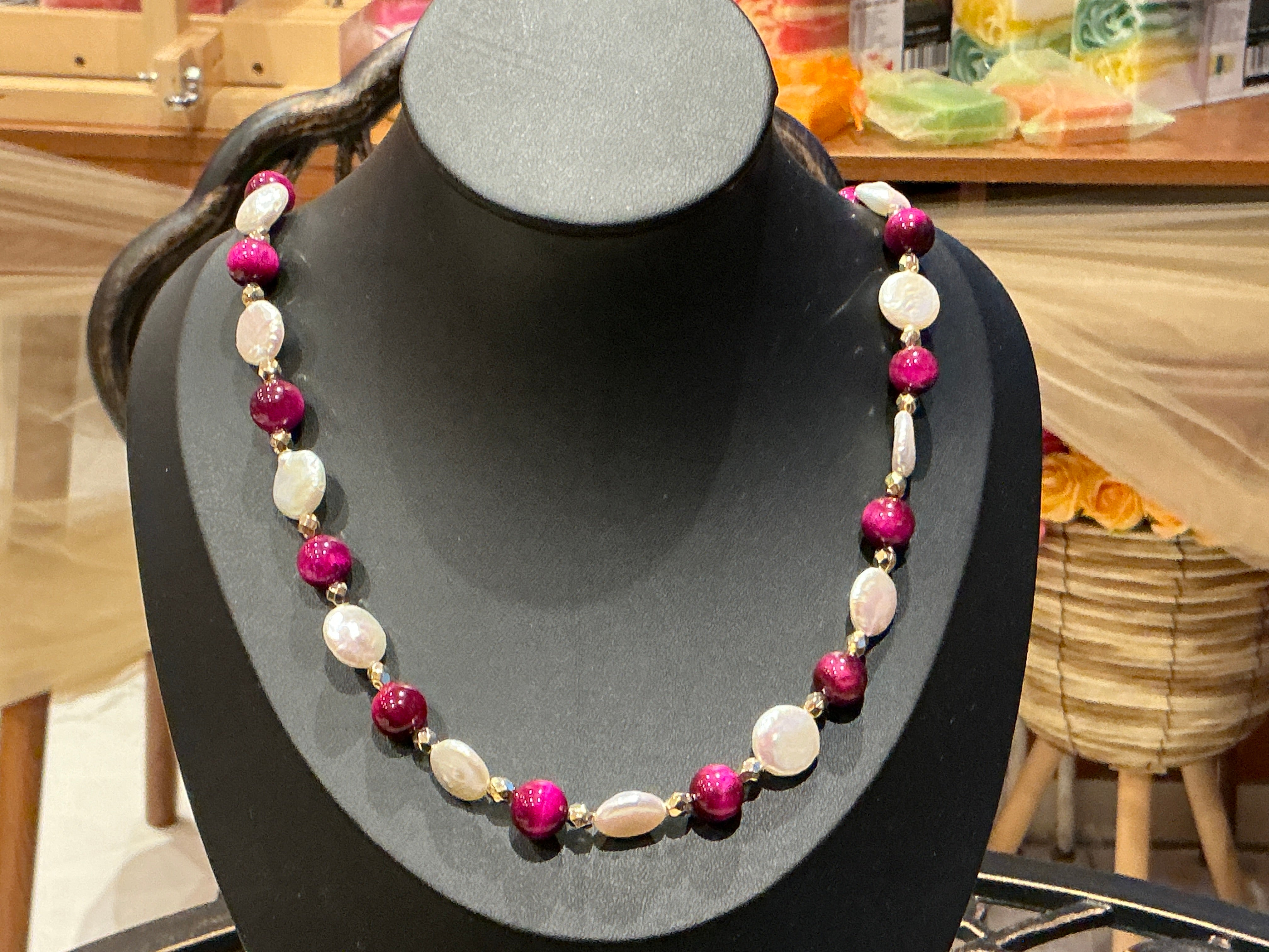 ROSA TIGERAUGE -BAROCK PERLE HALSKETTE ca.76 cm - UNICAT