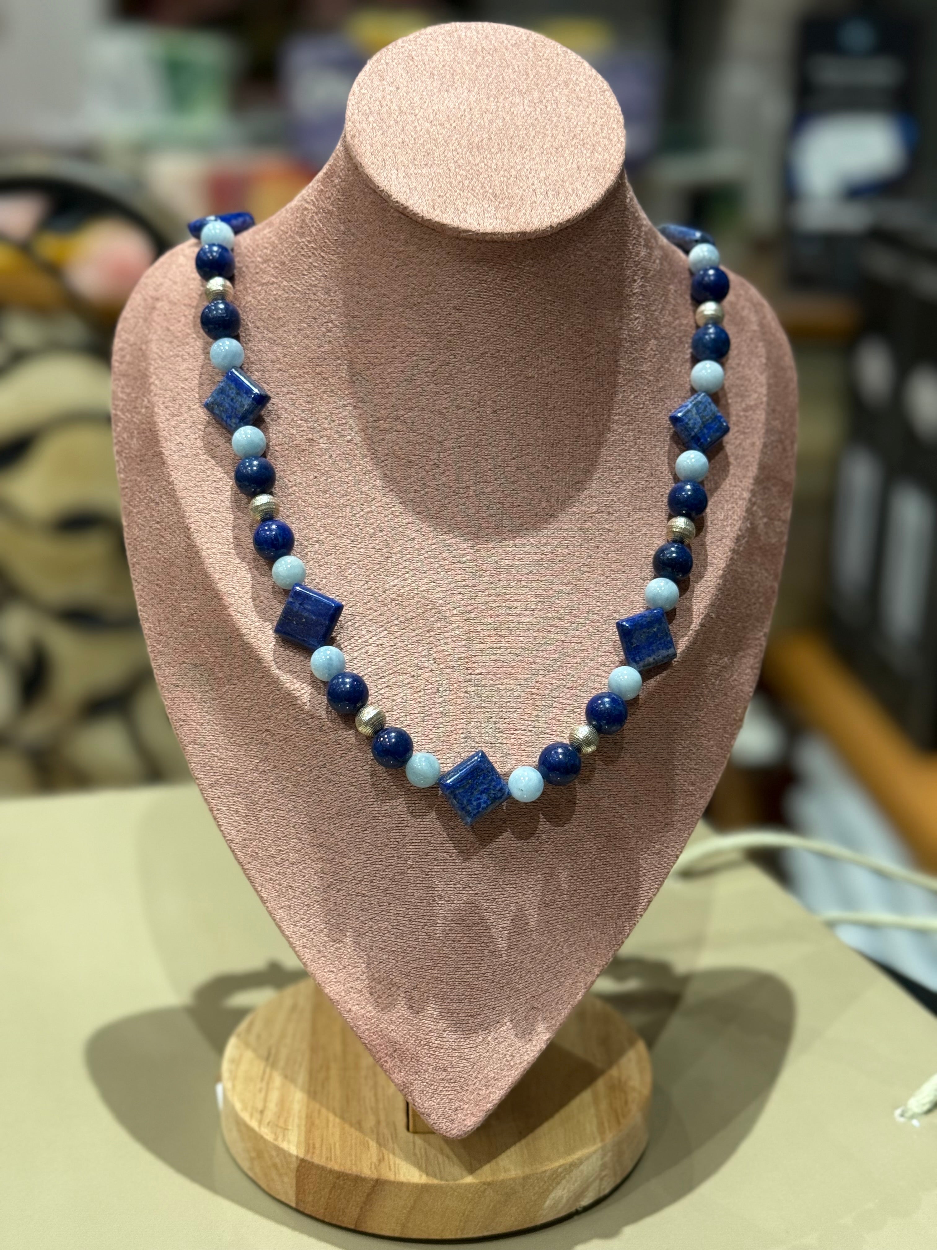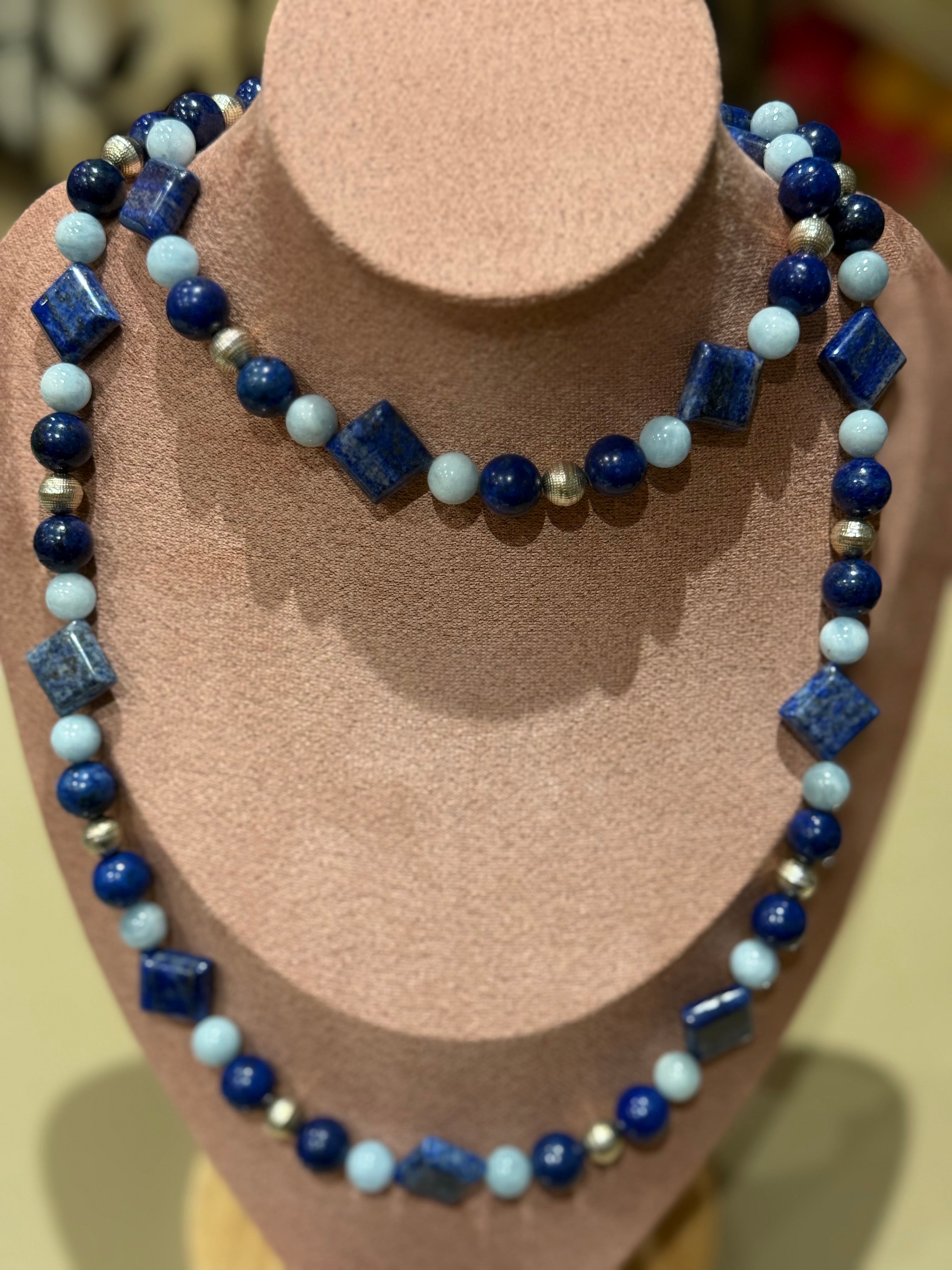 LAPISLAZULI - AQUAMARIN - SILBER ca.91cm HASKETTE - UNICAT