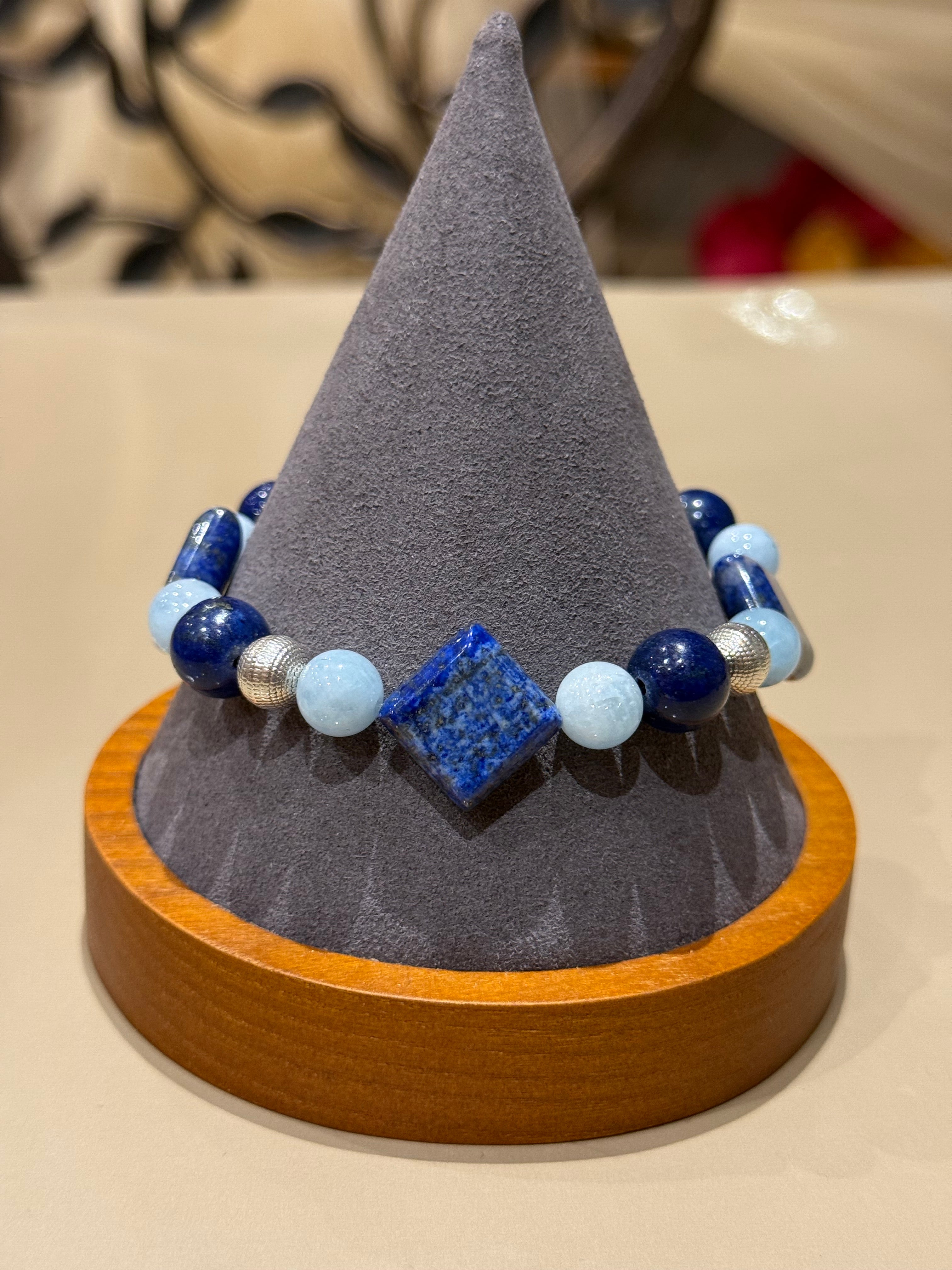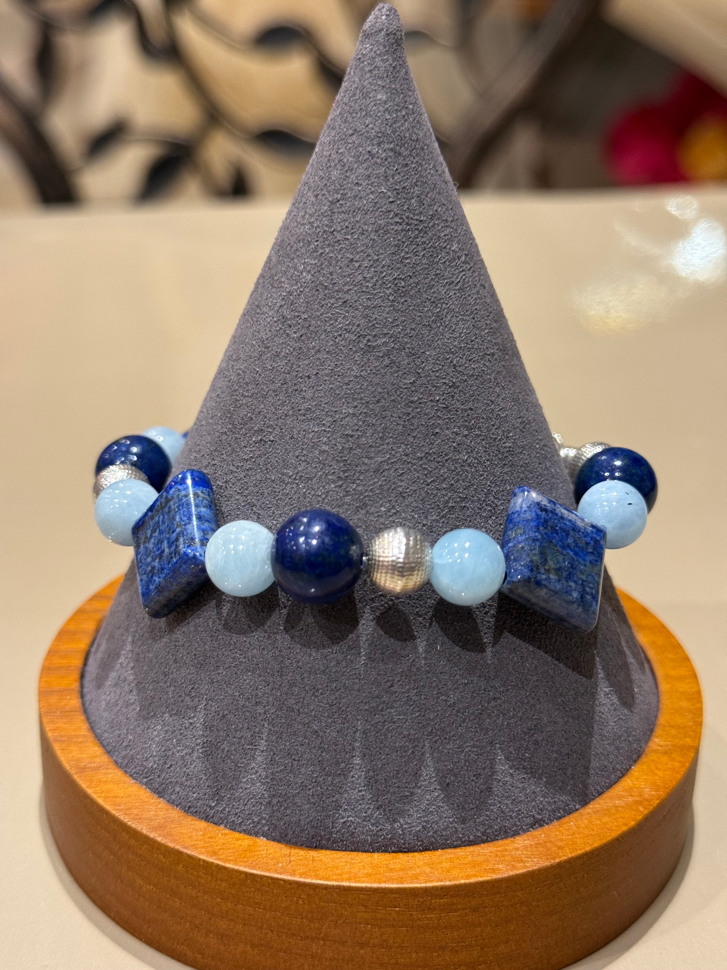 LAPISLAZULI - AQUAMARINE - SILBER ARMBAND ca.20 cm - UNICAT