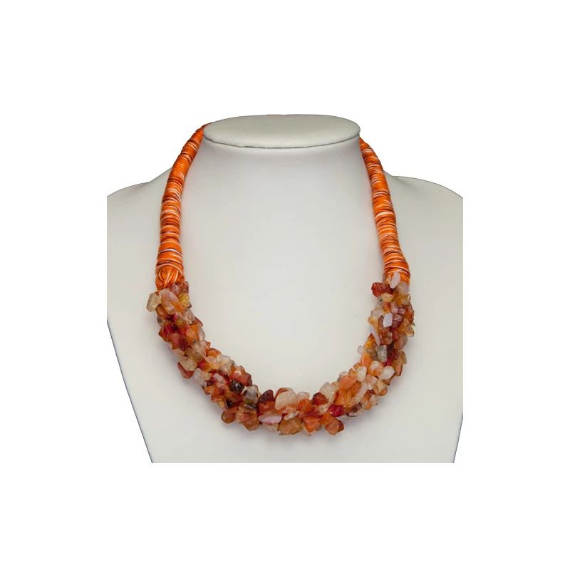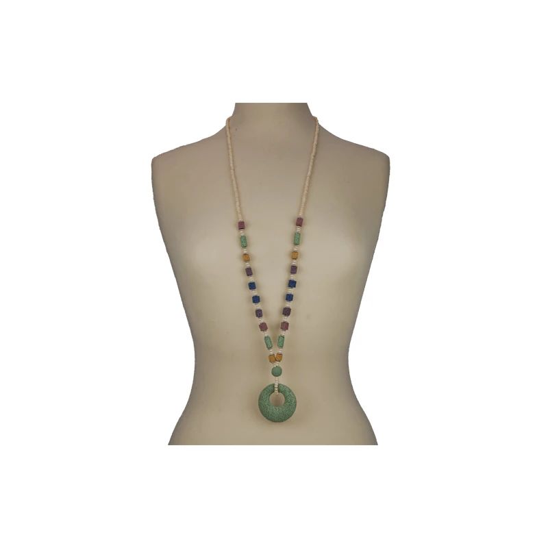 Lange Zuchtperlenkette mit Fantasyperlen, 120cm, Türkis-Orange-Creme