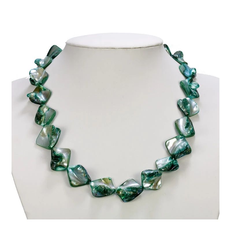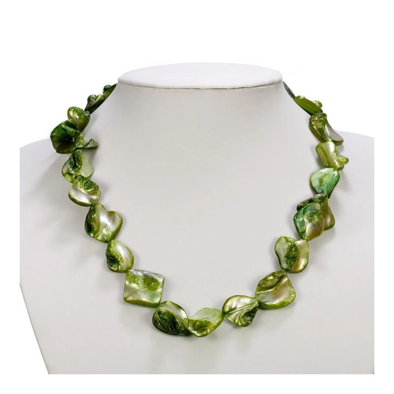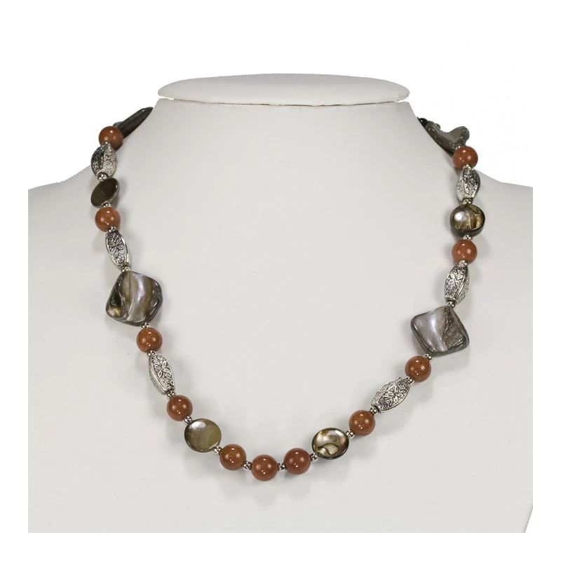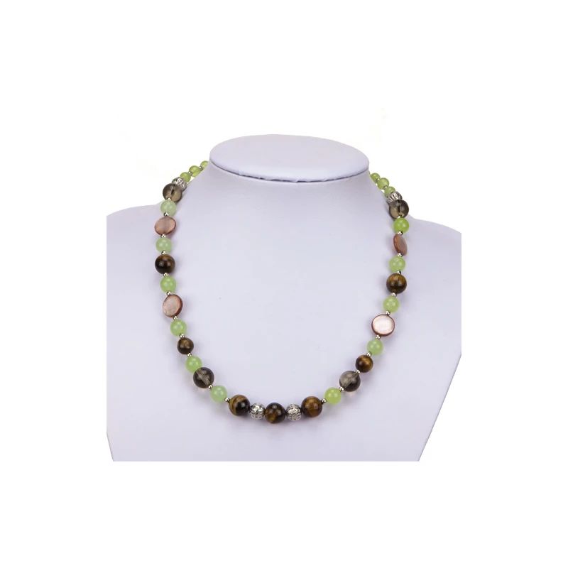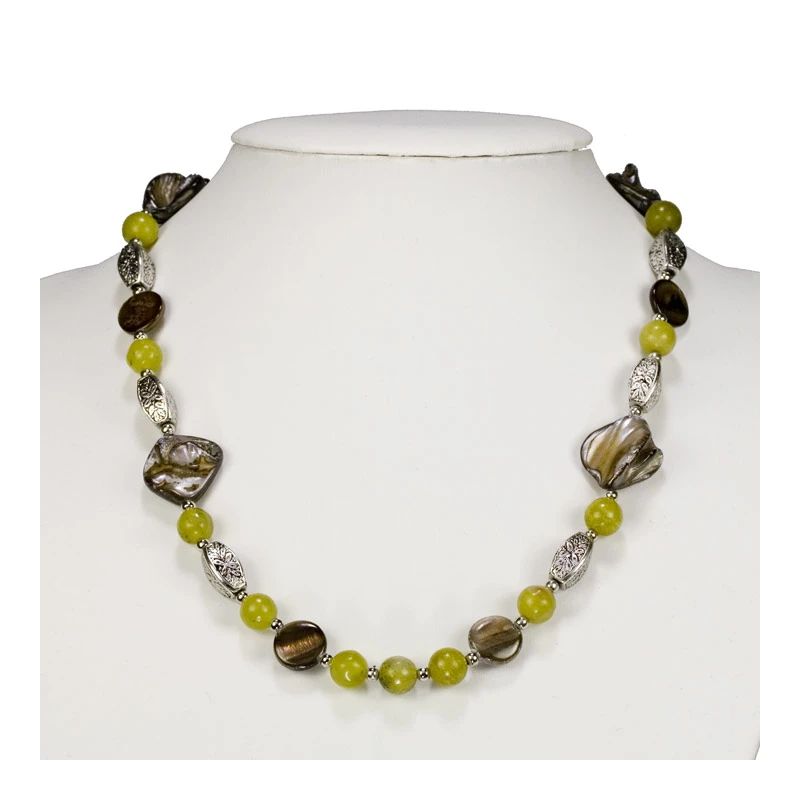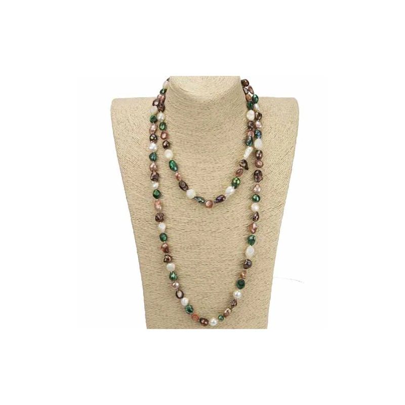Lange Zuchtperlenkette mit Fantasyperlen, 120cm, Grün-Braun-Creme