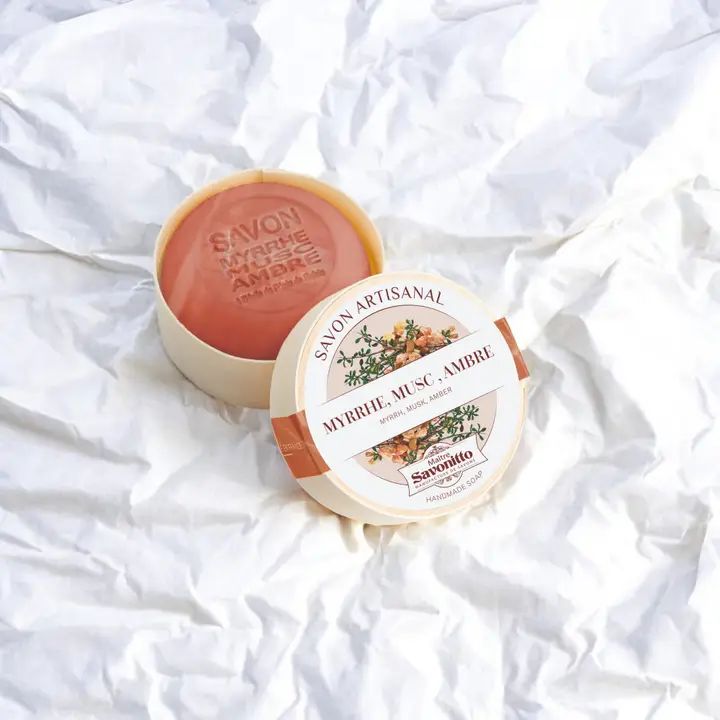 Myrre-, Moschus- und Bernsteinseife in Holzkiste 100g