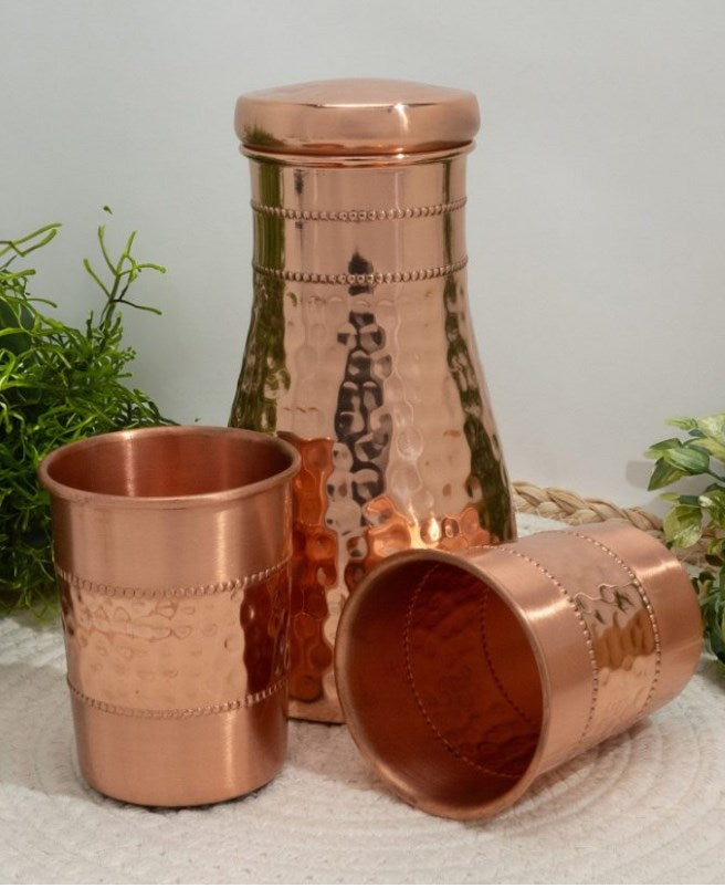 Reines Kupferset aus gehämmerter Karaffe ± 950 ml mit 2 geraden Bechern mit gehämmertem Rand