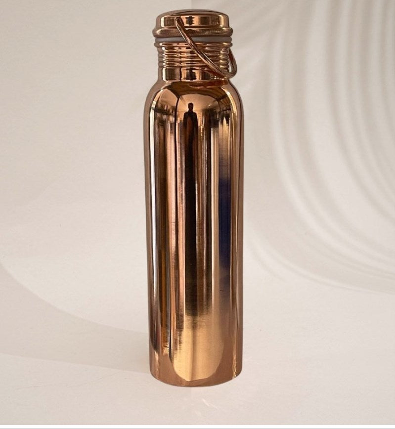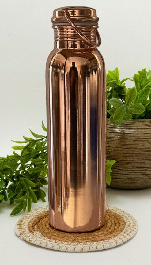 Polierte Wasserflasche aus reinem Kupfer mit Griff, ± 950 ml (330 g schwere Version
